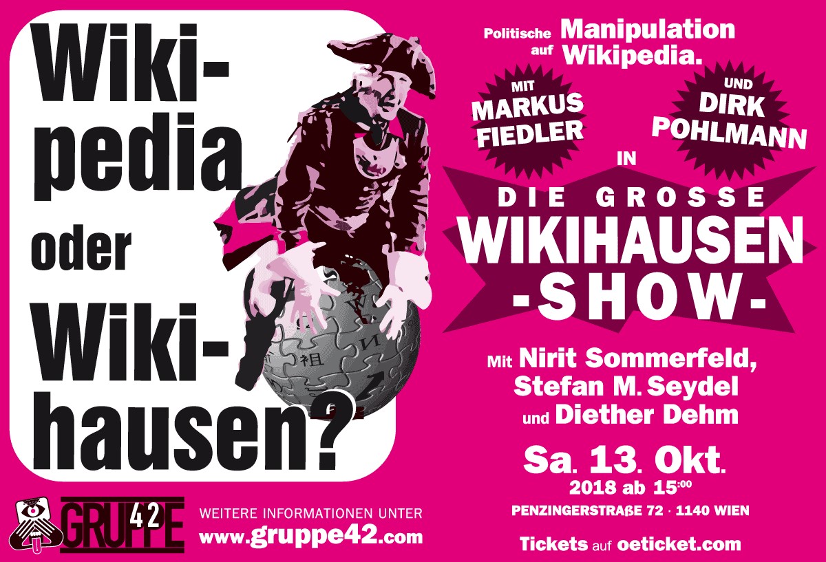Auch das Rechercheprojekt "Geschichten aus Wikihausen" von der österreichischen Plattform "Gruppe42" hatte sich, gemeinsam mit dem investigativen Journalisten Dirk Pohlmann und Markus Fiedler, den Teilen der Wikipedia, wo eine politische Manipulation belegbar ist, angenommen und dabei Erstaunliches zutage befördert.