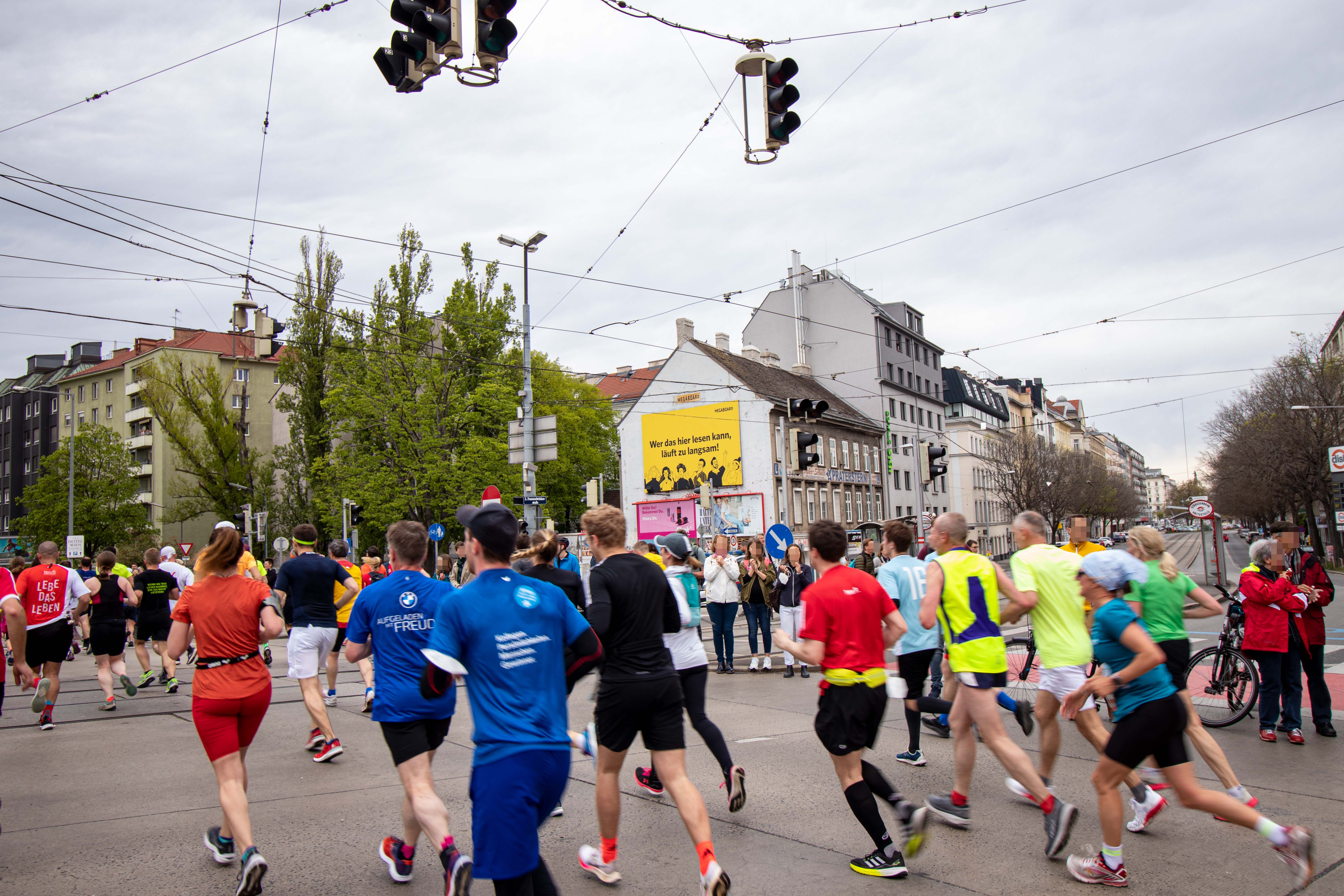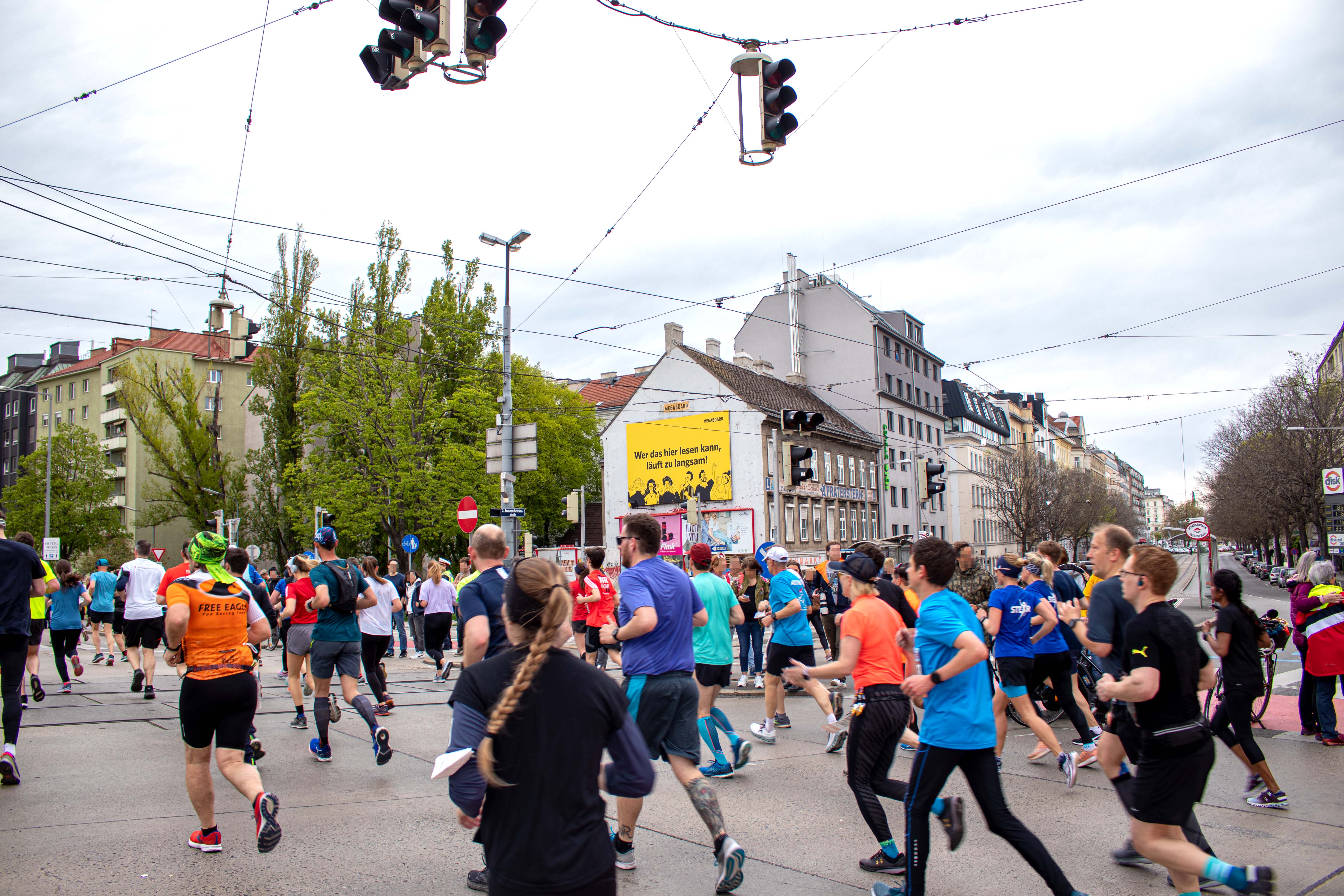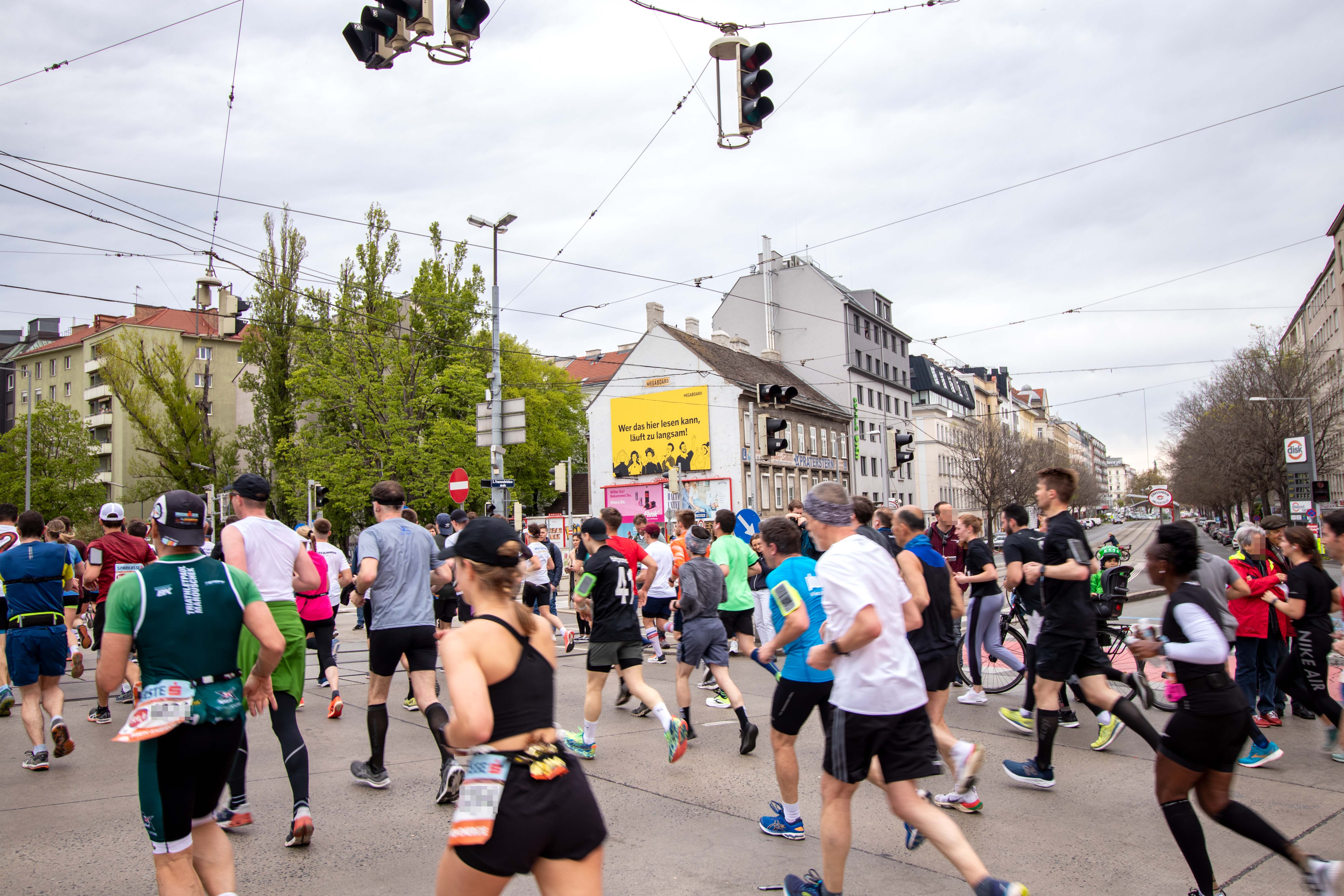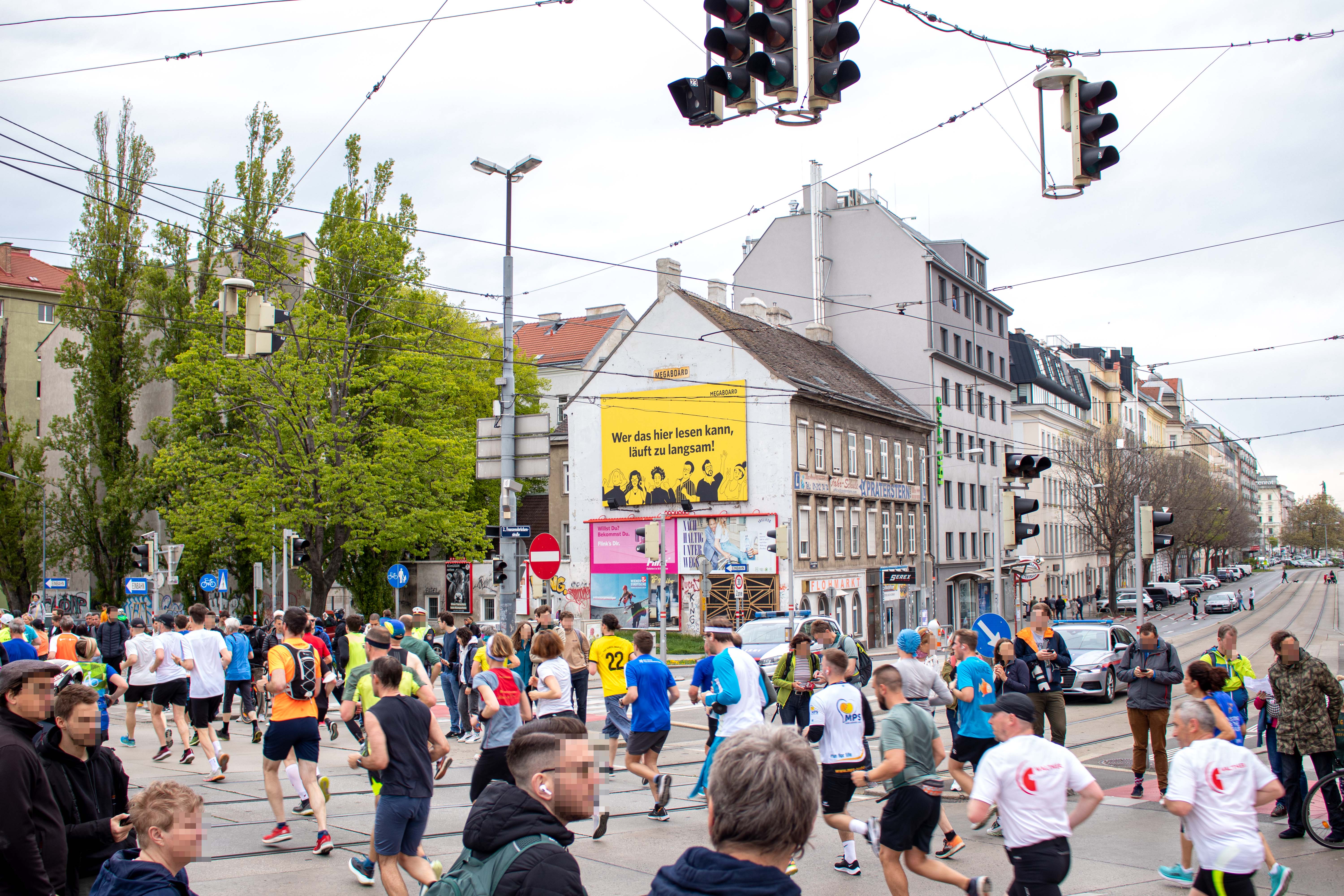 MEGABOARD verbreitete beim 39. Vienna City Marathon eine motivierende Botschaft in der Nähe der Franzenbrücke im 2ten Wiener Gemeindebezirk (Wiens). Mittels einem MEGAboard, welches die klare und humorvolle Botschaft "Wer das hier lesen kann, läuft zu langsam" zierte, wurden die Sportler:innen angespornt.