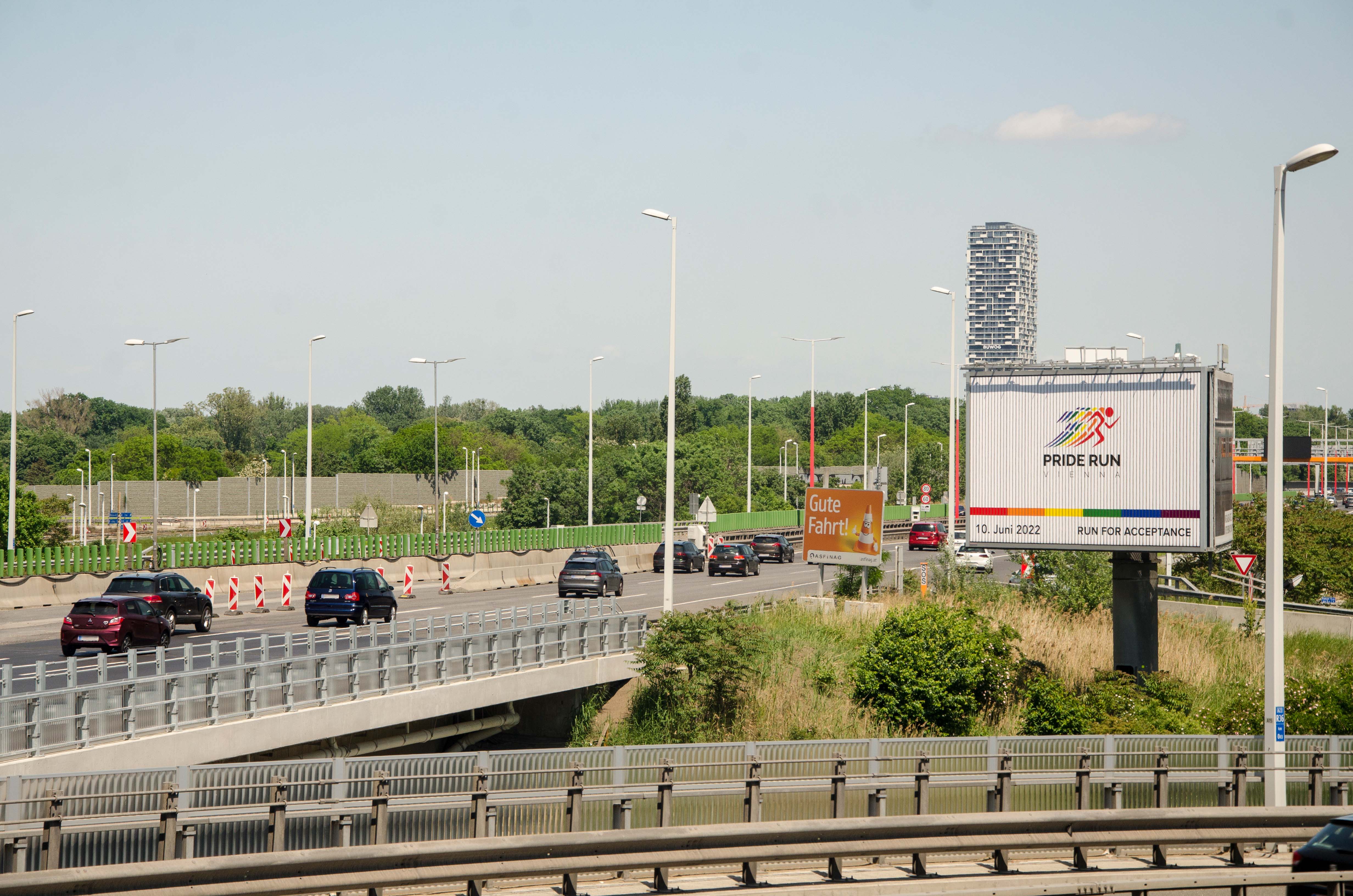MEGABOARD und Vienna Pride, sowie Pride Run Vienna kooperieren heuer zum ersten Mal. 2 unübersehbare MEGAboard Flächen wurden zur Bewerbung der jährlichen Parade und dem Pride Run Vienna für mehr Akzeptanz zur Verfügung gestellt.