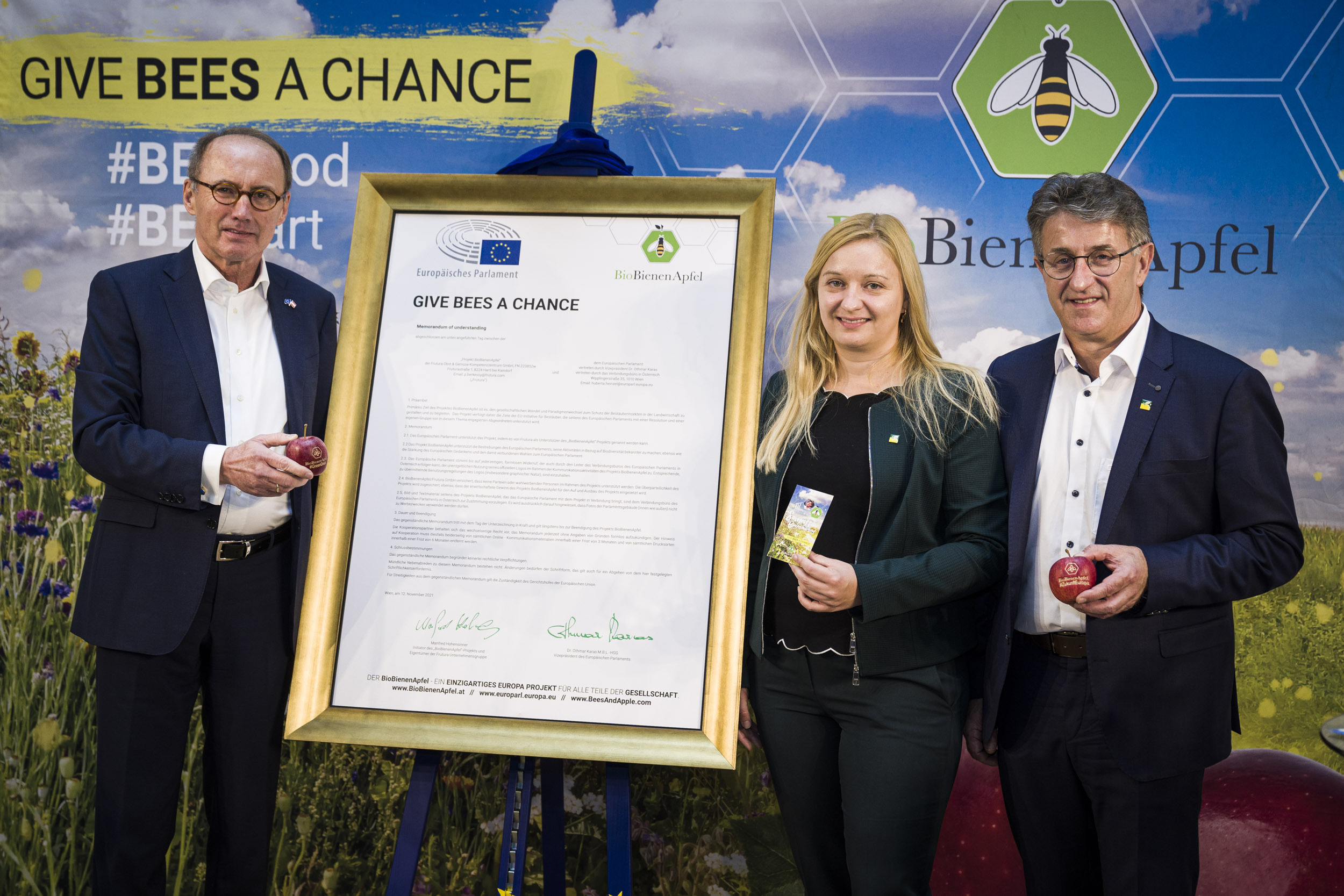 Neuen Lebensraum für Bienen schaffen und die Artenvielfalt schützen – das ist das Ziel des Gesellschaftsprojekts BioBienenApfel, das von Frutura-Eigentümer Manfred Hohensinner ins Leben gerufen wurde. Bereits im ersten Jahr sind mehr als 400 Hektar neue Blumenwiesen in Österreich gewachsen. Seit April 2022 gibt es das Projekt auch in Deutschland, im Mai 2022 wurde der BioBienenApfel in Rom Papst Franziskus persönlich präsentiert. Das Projekt wird als erste und bislang einzige private Initiative im Rahmen des Green Deals vom Europäischen Parlament offiziell unterstützt.