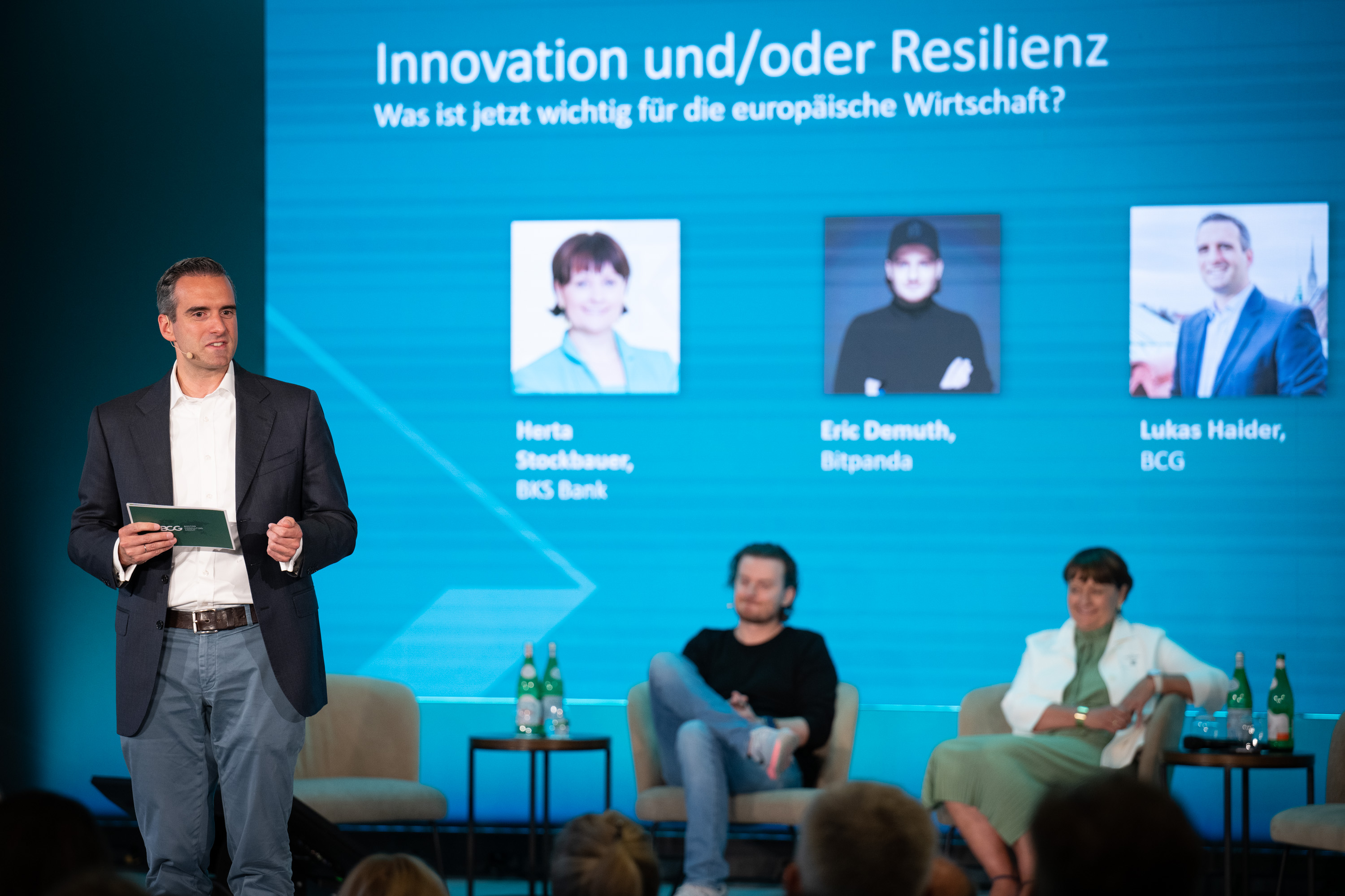 Mit dabei waren eine ganze Reihe an hochkarätigen Speaker*innen: Nikolaus von Bomhard, Aufsichtsratschef der Munich Rück, oder der frühere Volkswagen-CEO und nunmehrige Infineon-Aufsichtsratsvorsitzende Herbert Diess, Bitpanda-CEO Eric Demuth, Alexandra Ebert, Chief Trust Officer von Mostly AI, Speedinvest-Partnerin Marie-Helene Ametsreiter, Telekom Austria- CEO Thomas Arnoldner, VERBUND-CEO Michael Strugl oder CEO der Salzburg AG Michael Baminger. Einen besonderen Augenmerkt legte die Konferenz auch auf die Start-up Szene, vertreten waren unter anderem das Schweizer Fintech-Unternehmen Yokoy mit CEO Philippe Sahli, Tado-Gründer Christian Deilmann aus München, Alexandra Ebert von Mostly AI oder Sarah Fleischer von Tozero. Neben ihnen standen auch Staatssekretär Florian Tursky, ORF-Direktor für Technik und Digitalisierung Harald Kräuter am Podium.