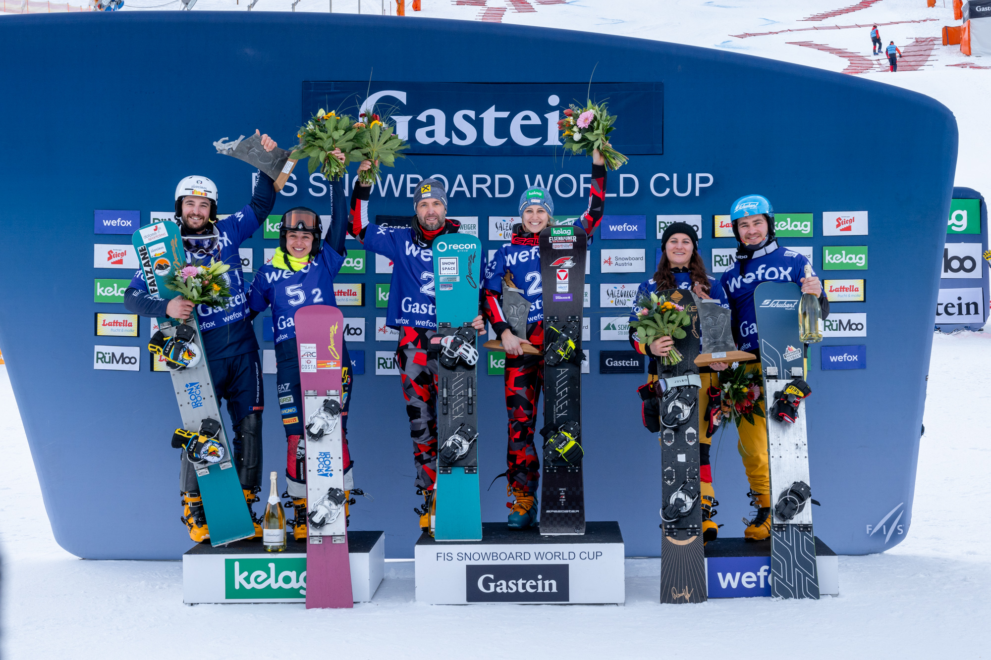 auch am zweiten und abschließenden Renntag des FIS Snowboard Weltcups in Bad Gastein demonstrierte das österreichische Team seine Stärke und sicherte sich den Sieg im Parallelslalom. Sabine Schöffmann und Andreas Prommegger fuhren im Teambewerb mit Bravour auf das oberste Stockerl, gefolgt von den Italienern Lucia Dalmasso und Daniele Bagozza sowie den Drittplatzierten Deutschen Ramona Hofmeister und Stefan Baumeister. Claudia Riegler und Arvid Auner fuhren auf den respektablen fünften Platz.
