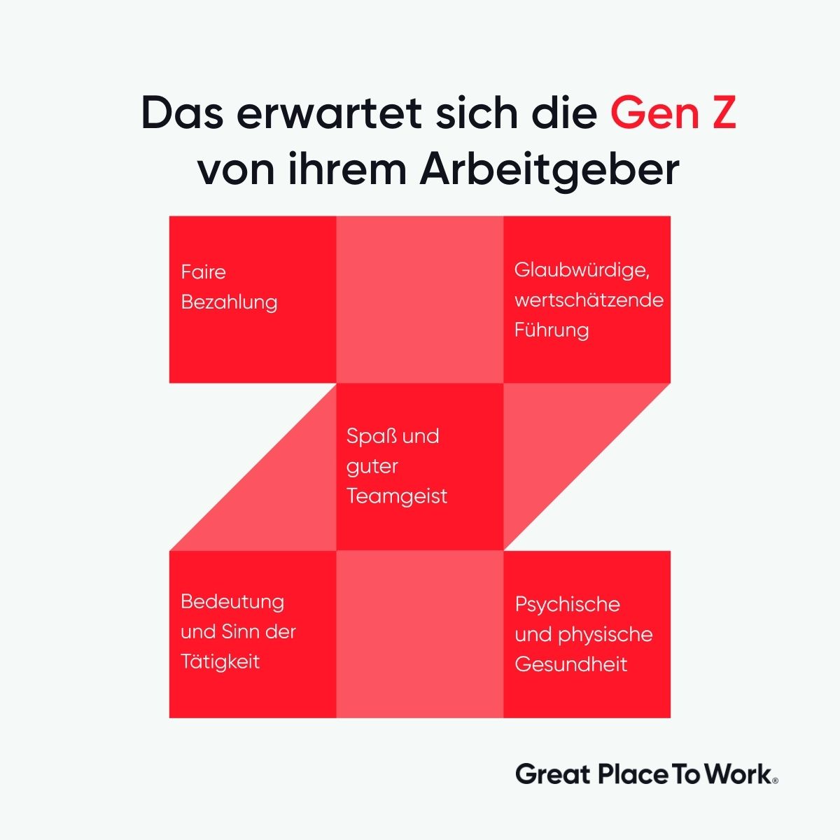 Aus diesen Gründen wechseln Young Talents das Unternehmen Die Generation Z ist mit 13 bis 24 Jahren die jüngste Altersgruppe auf dem Arbeitsmarkt und zeichnet sich durch eine hohe Wechselfreudigkeit aus. Die Studienergebnisse von Great Place To Work zeigen, dass Faktoren wie faire Bezahlung, glaubwürdige Führung, Spaß bei der Arbeit, guter Teamgeist und die Bedeutung der Tätigkeit entscheidend für die Mitarbeiterbindung sind.