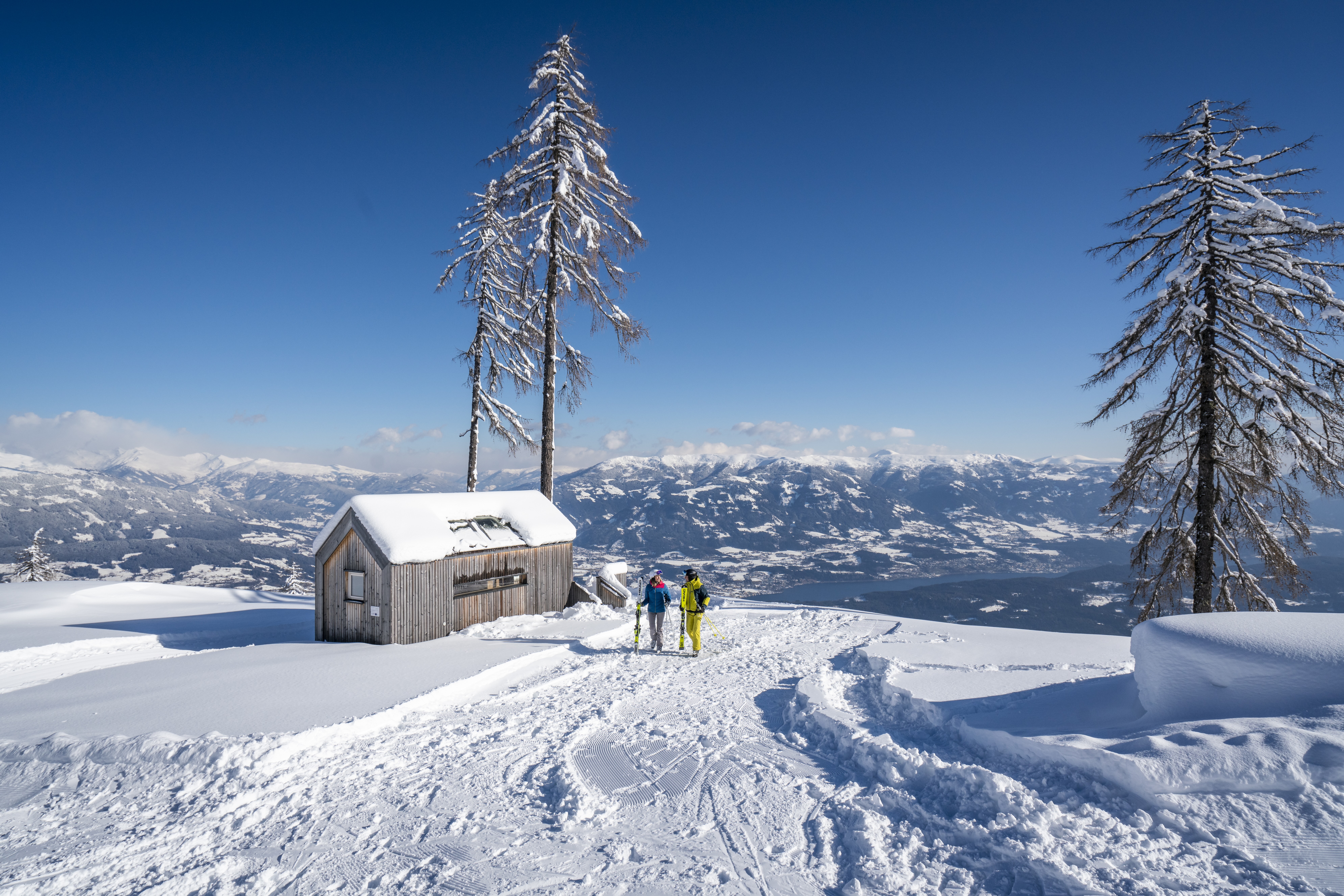Die "Biwaks unter den Sternen. Rifugio sotto le stelle." sind faszinierende private Oasen der Intimität, in denen Paare auch im Winter Zeit verbringen können. Diese wunderschönen Hütten, die an verschiedenen Orten rund um den Millstätter See oder hoch oben am Goldeck liegen, sind in die Natur eingebettet und aus einheimischem Holz (Zirbe oder Lärche) gebaut. Sie bieten unvergessliche Nächte unter einem romantischen Sternenhimmel. Wenig braucht es, um glücklich zu sein: ein Bett, das den Raum füllt, ein Tisch, zwei Stühle und weiche Decken. Das große Panoramafenster bietet einen großartigen Blick auf den See und die Berge. Im Winter, wenn die Schneeflocken tanzen, verströmen die "Biwaks unter den Sternen" einen besonderen Charme. www.biwaks.millstaettersee.com