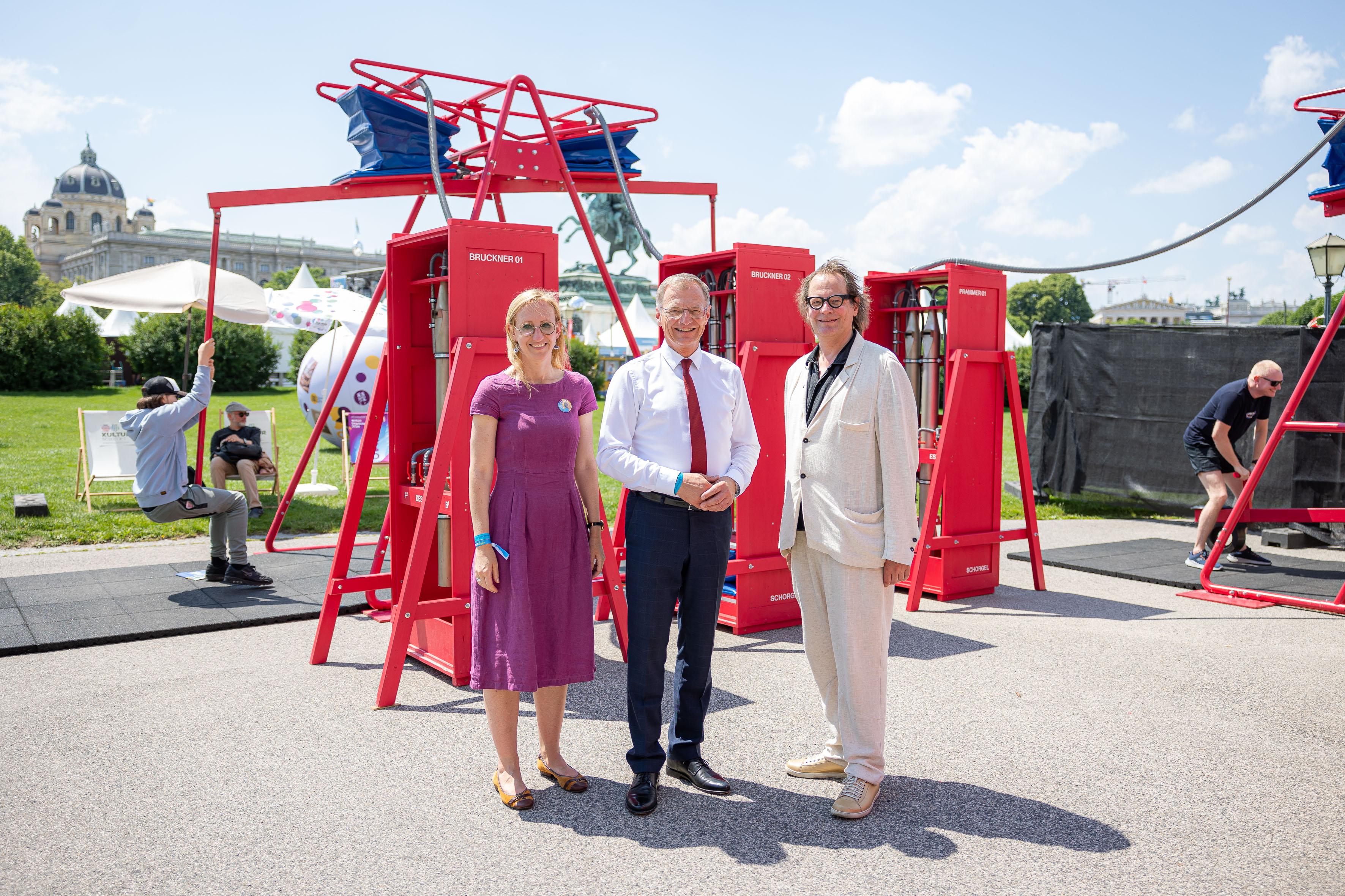 Am 8. Juni 2024 war das wundersame rote Spielgerät am Wiener Heldenplatz erlebbar und wurde von den Besucherinnen und Besuchern gemeinsam zum Klingen gebracht. Landeshauptmann Mag. Thomas Stelzer: „Mit der SCHORGEL reist eine Botschafterin der OÖ KulturEXPO Anton Bruckner, die für Tradition, Innovation aber auch Avantgarde steht, nach Wien zur Sommerfrische. Sie vereint Spielerei und Tüftelei mit dem Bruckner-Instrument schlechthin und ist ein Erlebnis für Jung und Alt.“