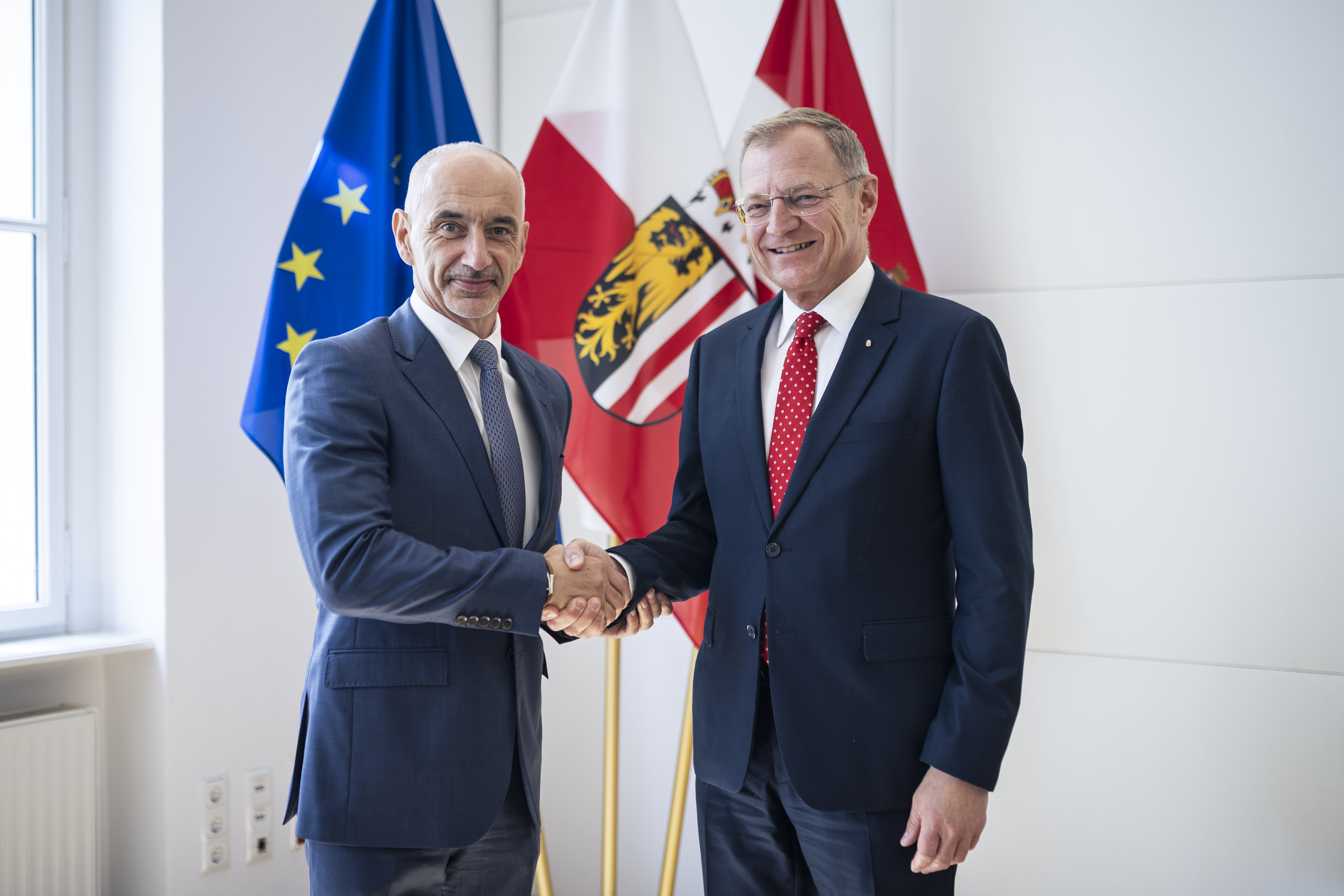Das Thema Verkehr stand im Mittelpunkt des Besuches von Südböhmens Kreishauptmann Martin Kuba bei Landeshauptmann Thomas Stelzer. „Das ist ja auch eines der zentralen Themen, sowohl Südböhmen als auch wir brauchen Lösungen, wie wir die Verkehrsströme in die richtigen Bahnen lenken können“, sagt Stelzer.