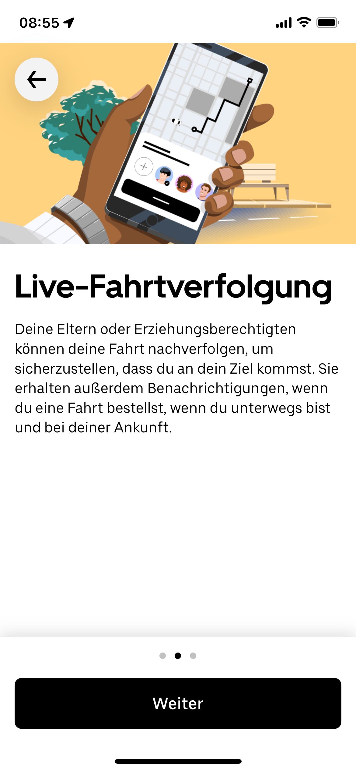 - Erweiterte Kommunikation: Eltern und Erziehungsberechtigte können während einer Fahrt jederzeit den*die Fahrer*in ihres Teenagers sowie den Kundendienst von Uber kontaktieren.