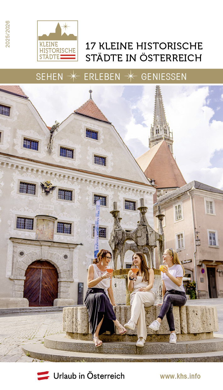 Erleben und Genießen: Die Kleinen Historischen Städte in Österreich präsentieren neuen Reiseführer und Event-Highlights Die 17 Kleinen Historischen Städte in Österreich (KHS) vereinen historische Stadtbilder, besondere Naturlandschaften und ein vielfältiges Kulturangebot mit Liebe zur Gastronomie und Gastfreundschaft. Nach einem erfolgreichen Tourismusjahr 2023/2024* mit mehr als 868.000 Ankünften und über 3,1 Mio. Nächtigungen hält auch 2025 für Besucher:innen zahlreiche Highlights bereit. Diese wurden von den Vertreter:innen der Kleinen Historischen Städte bei der heutigen Pressekonferenz in Wien zusammen mit dem neuen Reiseführer 2025/2026 vorgestellt.