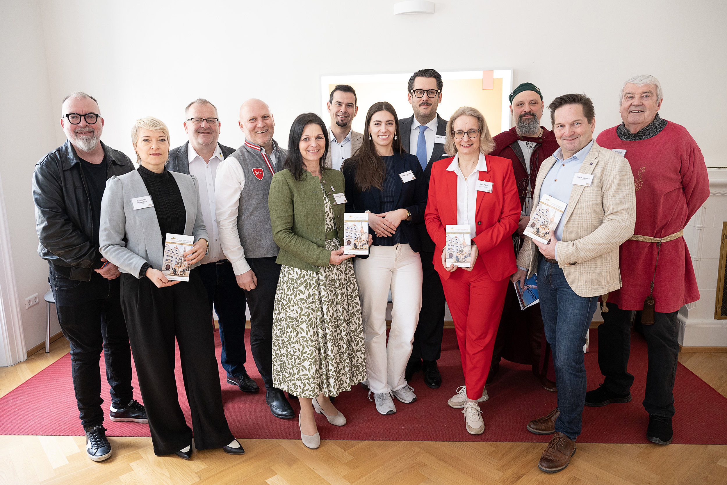 Der neue Reiseführer wurde heute in Wien vorgestellt. Neben Eva Pötzl (Geschäftsführerin KHS, Steyr) nahmen auch Klaus Lorenz (Präsident KHS, Baden bei Wien), Christian Koblinger (Radstadt), Georg Bachleitner (Braunau), Rainer Candido (Hallein), Michael Sinnhuber (Mittersill), Mariella Auinger (Gmunden), Karoline Straner (Judenburg), Willi Beck (Hainburg), Jakob Reitinger (Bad Ischl) und Katharina Rotschne (Freistadt) als Vertreter:innen der Kleinen Historischen Städte teil. Ab sofort ist der Guide in allen Touristeninformationen der Kleinen Historischen Städte in Österreich kostenlos und so lange der Vorrat reicht erhältlich.