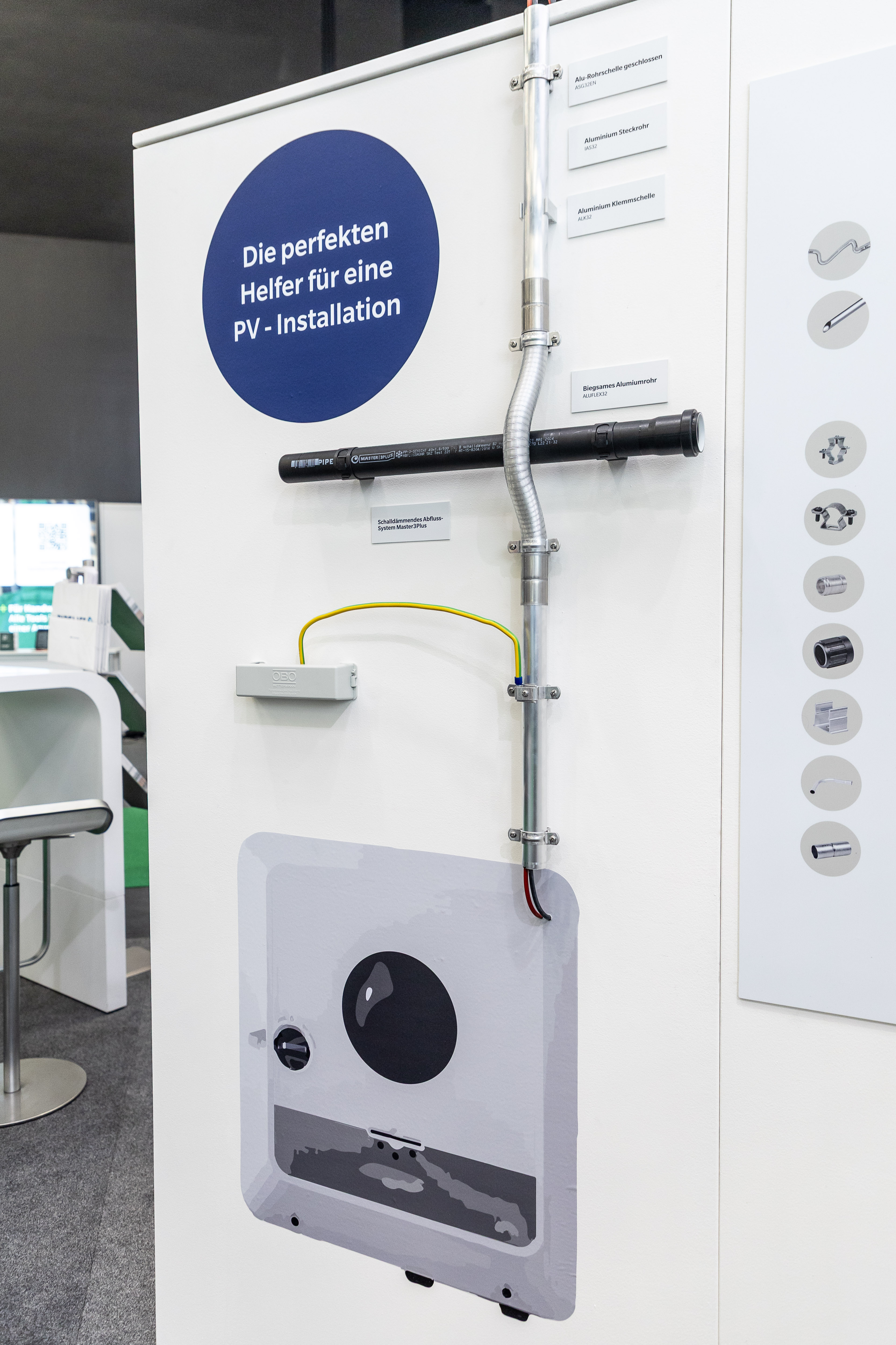 Bestehende Rohre oder Leitungen können zu Hindernissen bei der elektrischen Installation der PV-Anlage werden. Aluflex löst diese Herausforderung: Als formbares Aluminiumrohr vereint es die positiven Eigenschaften von herkömmlichen Aluminiumrohren mit jenen von flexiblen Elektrorohren und kann damit jedes Hindernis umgehen. So bietet es Elektrikern größtmögliche Flexibilität und Sicherheit bei der Installation von Photovoltaik-Anlagen. In Kombination mit der Erdungsschelle entspricht die Installation der OVE-Richtlinie R 11-1.