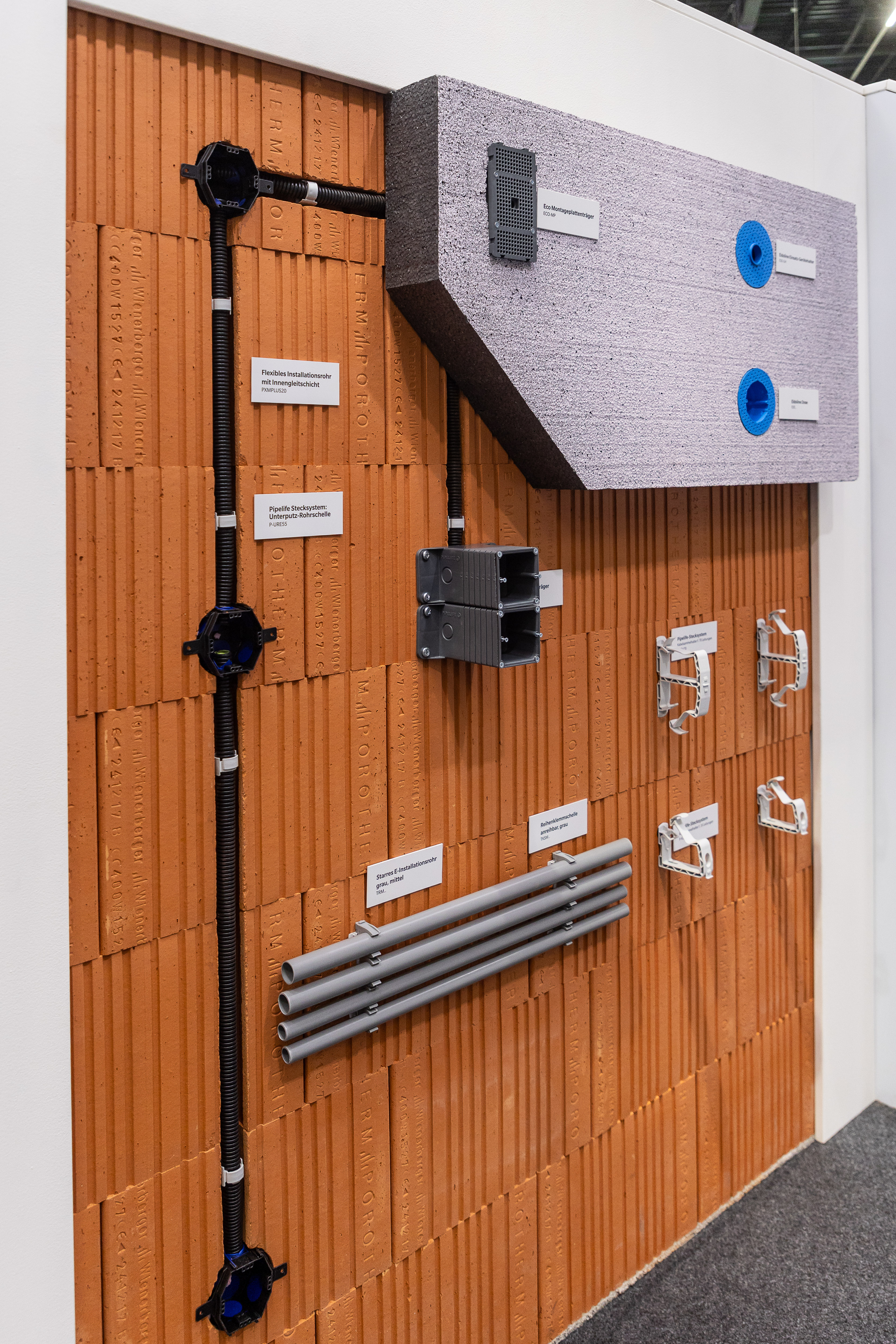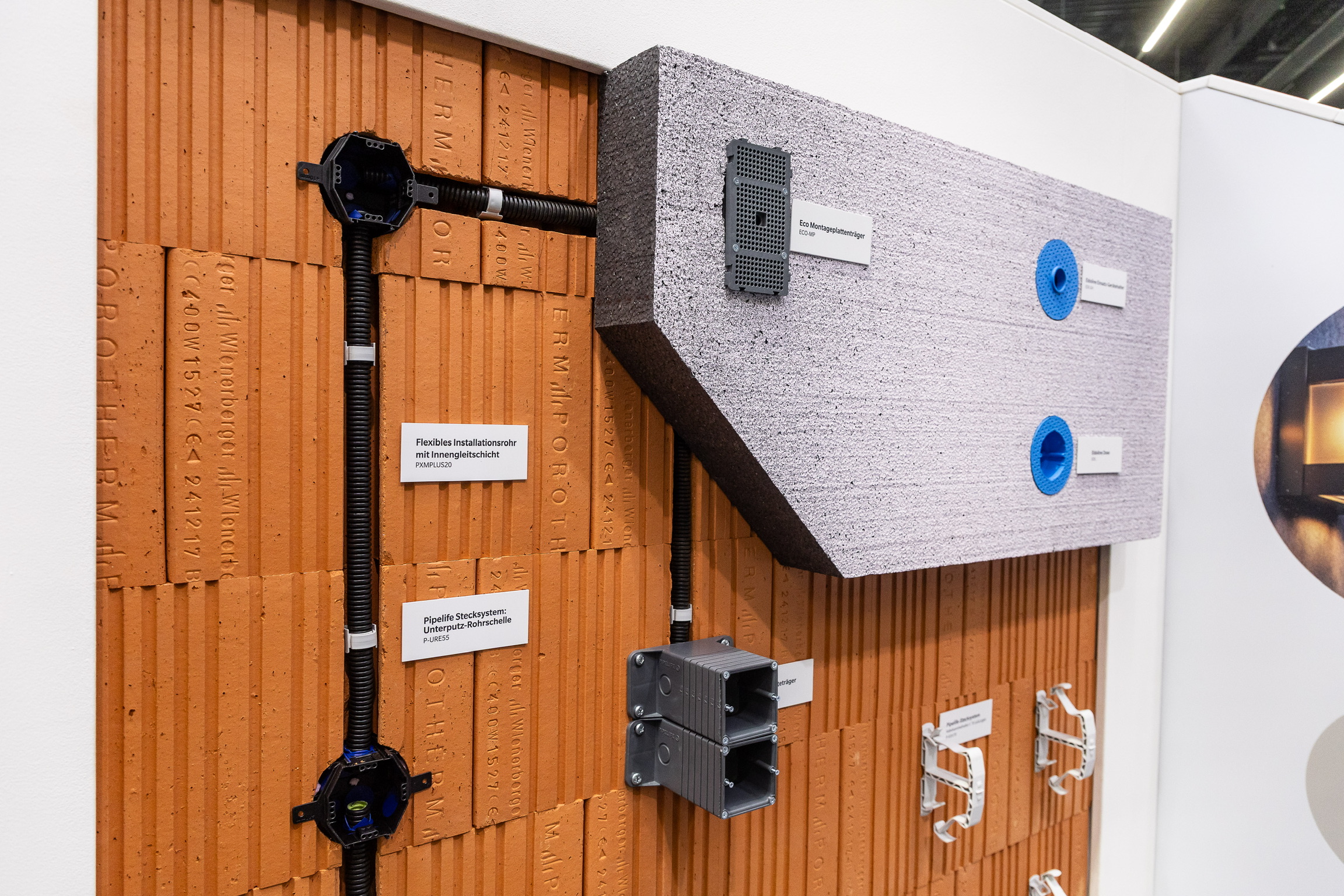 Werden Schalter oder Geräte unsachgemäß in einer gedämmten Fassade installiert, kann diese beschädigt werden und Wärmeverluste verursachen. Um das Problem zu umgehen, werden am Messestand praktische Lösungen für die Montage von Steckdosen, Leuchten oder Kameras in Wärmedämmverbundsystemen präsentiert – sowohl für die Installation in der Bauphase als auch für den nachträglichen Einbau.
