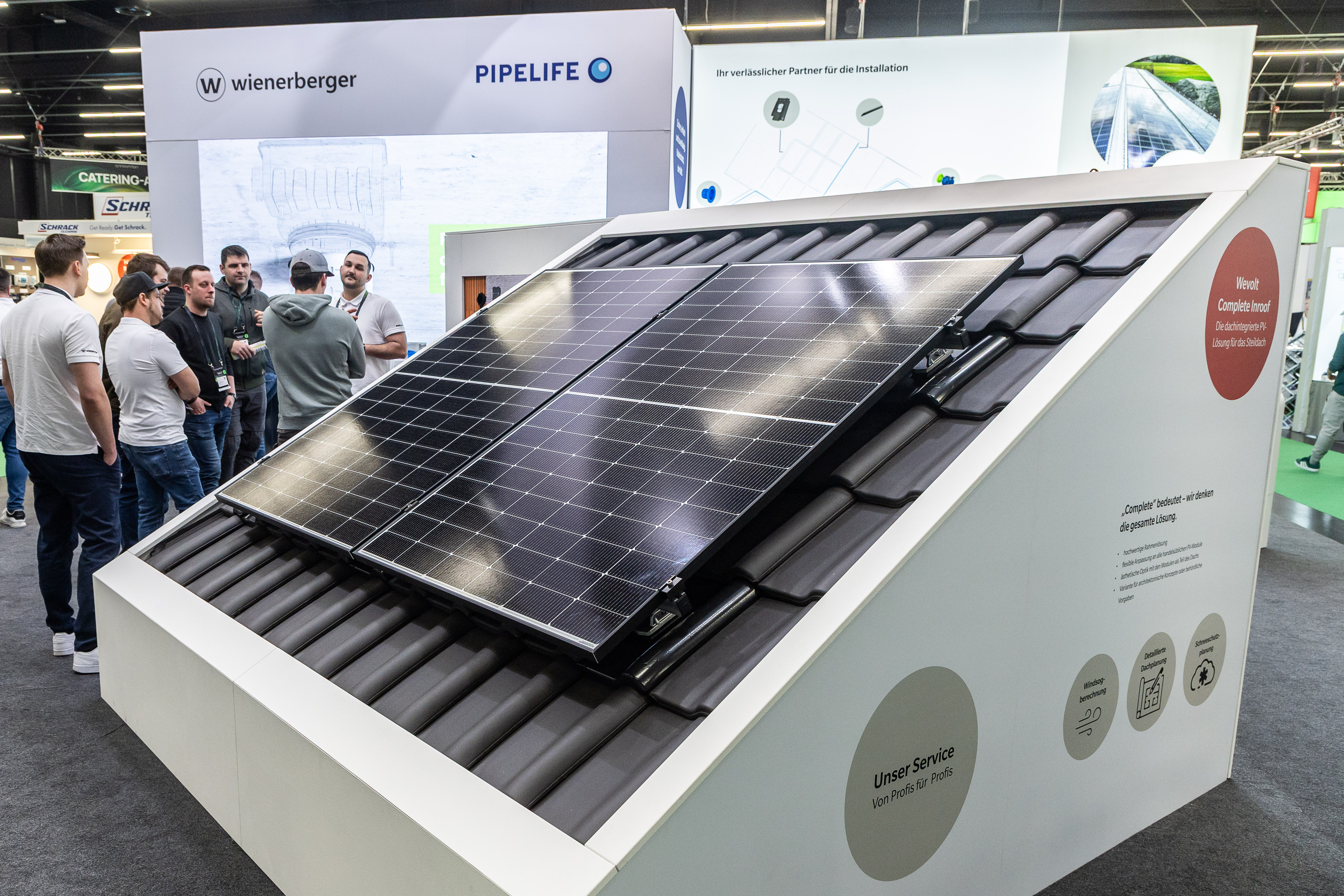Um den Fachbesuchern einen Einblick zu geben, mit welchen spannenden Entwicklungen sich die Unternehmen derzeit auseinandersetzen, wird am Messestand der „world of wienerberger“ eine PV-Indachlösung als Pilotprojekt vorgestellt. Mit dem ausgestellten Modell soll ein offener Dialog über den Trend der Indachmontage mit allen Interessierten angeregt werden.