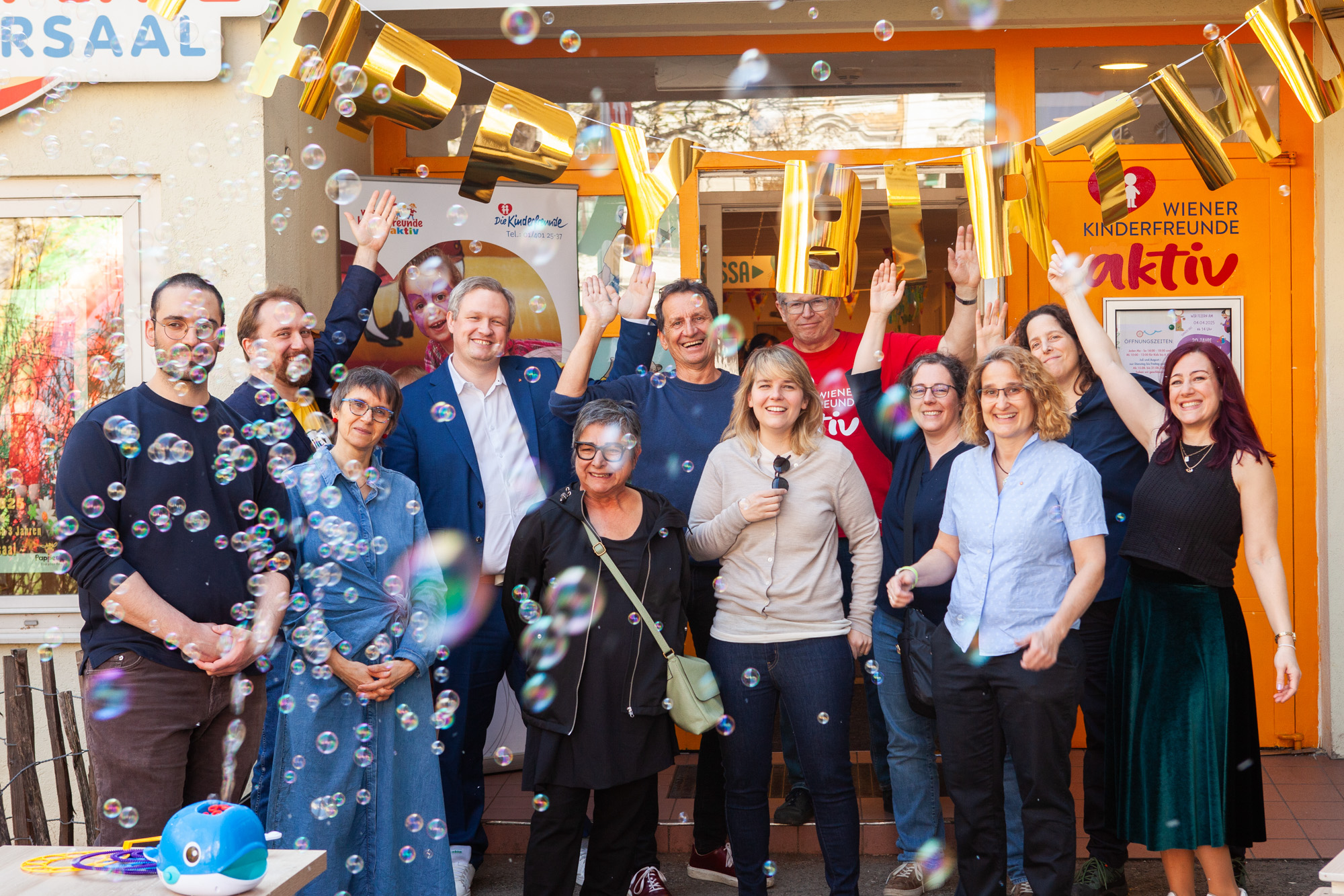Mit dabei waren auch einige Ehrengäste, darunter Bezirksvorsteherin Stefanie Lamp, Kinderfreunde-Wien Vorsitzender NRAbg. Christian Oxonitsch, Ruben Mörth (Vorsitzender der Wiener Kinderfreunde aktiv), Nicole Abdel-Qader und Christine Pantucek-Eisenbacher von der MA13 sowie die ehem. NRAbg. Nurten Yilmaz. Gemeinsam mit den Kindern wurde gefeiert, getanzt und gelacht – ein gelungener Rückblick auf zwei Jahrzehnte Spiel und Spaß im Seversaal.