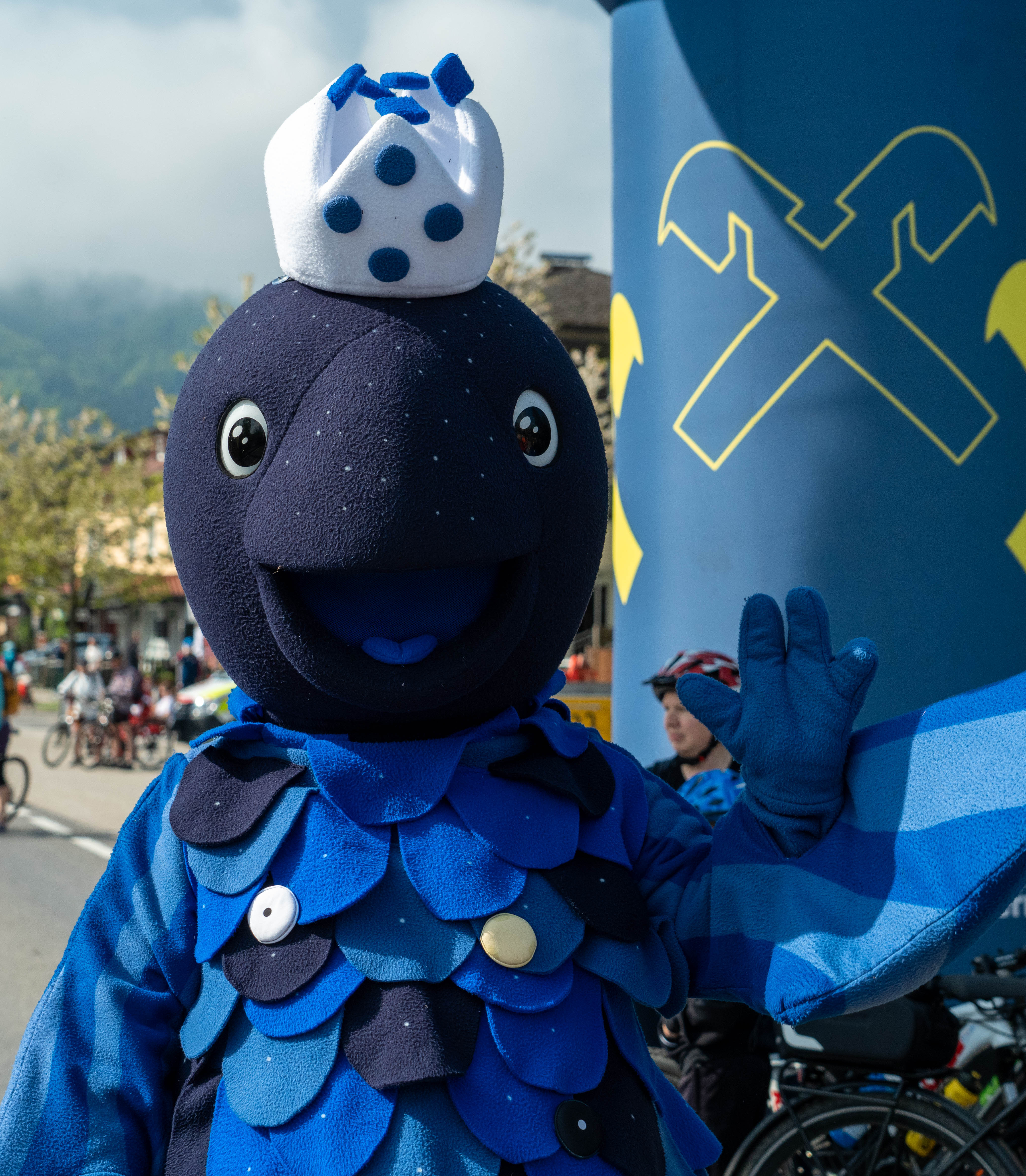 Auch das Regionsmaskottchen PERLA war an dem Tag rund um den Attersee unterwegs und hat Geschenke an alle kleinen Radfahrer:innen verteilt. An den Infoständen des TVBs wurde die beliebte Merchandise Kollektion präsentiert. Hoodies, Shirts, Strandbälle und viele tolle Artikel, die es in den Infobüros zu kaufen gibt.