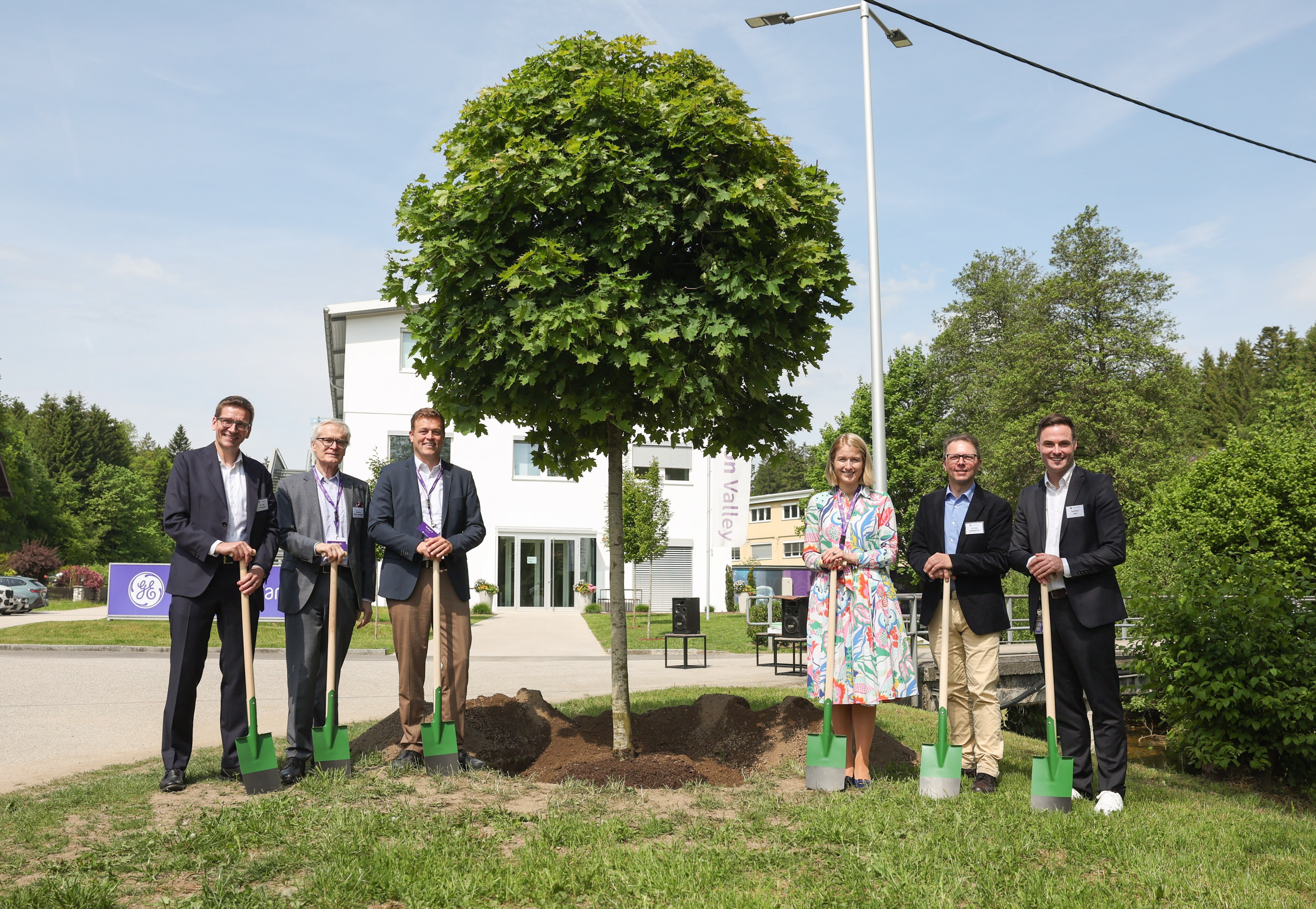 LH-Stv.in Haberlander und LR Kaineder eröffneten den ersten emissionsfreien Standort Europas von GE HealthCare in Zipf