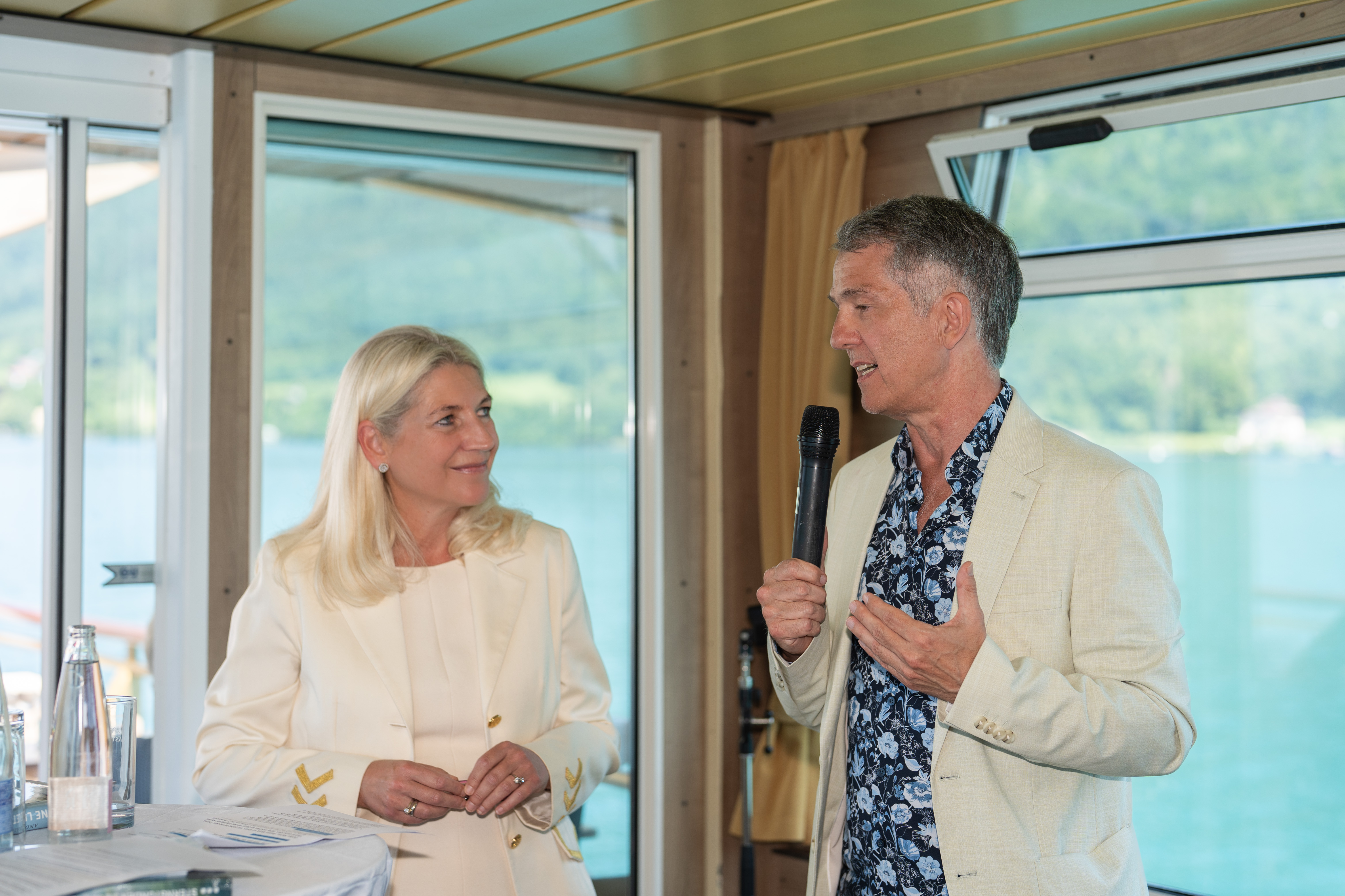 Kom.-Rat. Mag. Doris Cuturi-Stern, Initiatorin des Schwimmenden Künstlersalons: „Es war mir eine außerordentliche Freude, zum Auftakt des diesjährigen Gustav Mahler Festivals den mittlerweile dritten Schwimmenden Künstlersalon moderieren zu dürfen und gemeinsam mit inspirierenden Gesprächspartner:innen an Bord des Klimt-Mahler-Schiffs über Kunst zu leben und die Kunst zu sterben zu sprechen – ein Thema, das uns alle auf tief existenzielle Weise berührt. Die eindrucksvolle Kulisse des Attersees und die besondere Atmosphäre an Bord haben den Austausch besonders intensiv und nachwirkend gemacht.“