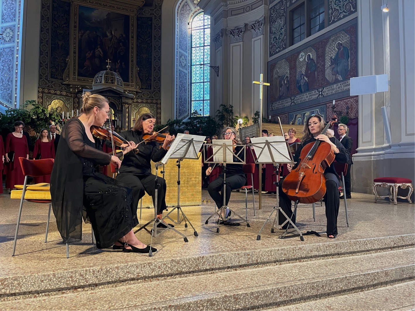 Auf die Eröffnung folgte am Abend ein besonderes Programm-Highlight in der Stadtpfarrkirche Bad Ischl: Der Chorus sine nomine unter der Leitung von Johannes Hiemetsberger sorgte gemeinsam mit den Solistinnen des 1. Frauenkammerorchesters von Österreich Lucia Hall, Teodora Miteva, Palmena Ivanova und Kinga Vass für einen Abend voller Klangkultur. Im Mittelpunkt standen dabei Werke von Wolfgang Amadeus Mozart, Franz Schubert und Gustav Mahler. Die einzigartige Akustik der Kirche verlieh dem Konzertabend eine ganz besondere Atmosphäre. Unter den Gästen befanden sich unter anderem Bürgermeisterin Nicole Eder und Ines Schiller, Bürgermeisterin von Bad Ischl.