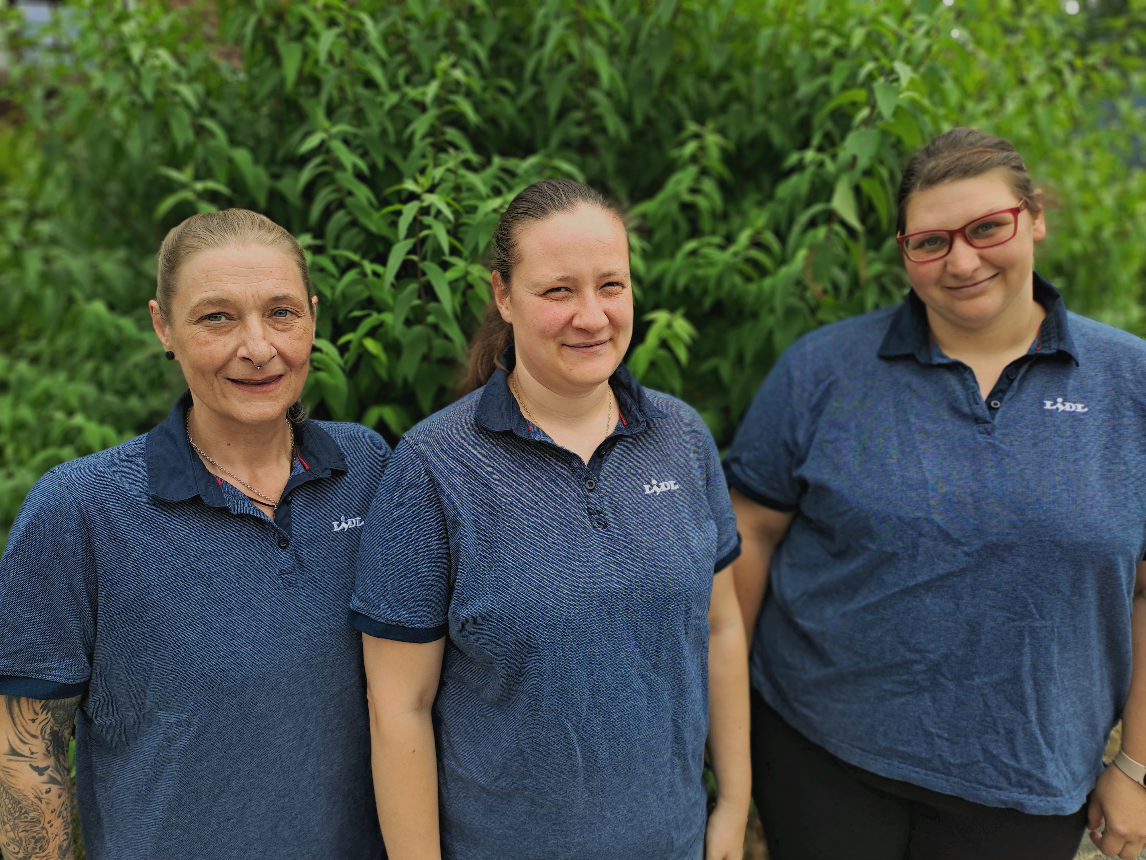 Bild: Lidl Österreich ist seit 2019 Partner der „Vier Jahreszeiten“ und gibt dadurch Menschen mit Behinderung die Möglichkeit, in normalen Betrieben mitzuarbeiten. Auf dem Bild das Betreuungsteam vom Standort Steinfeld (v. l. n. r.): Melanie Schober, Julia Niedermüller und Katja Feichter (Standortleitung).