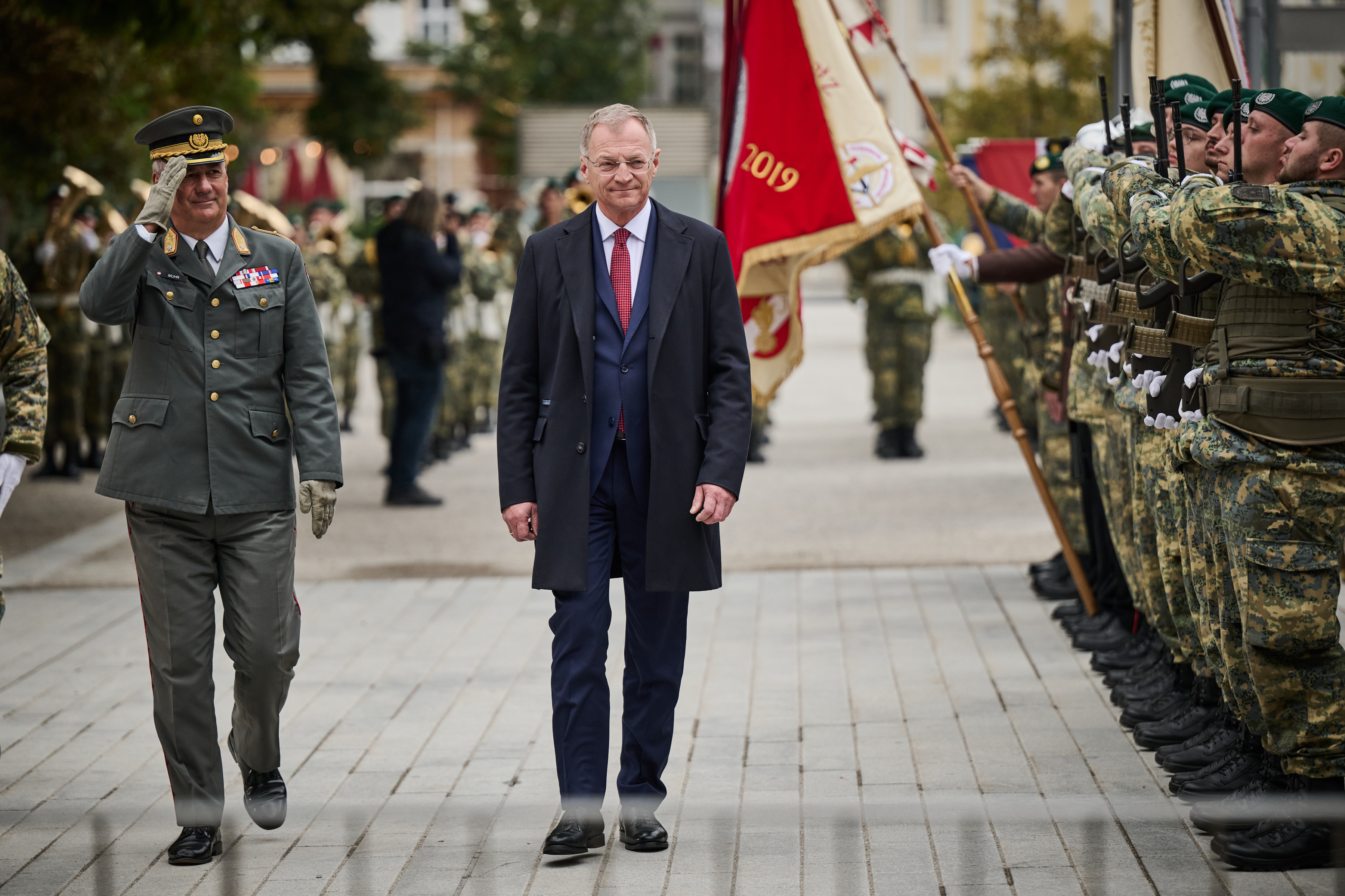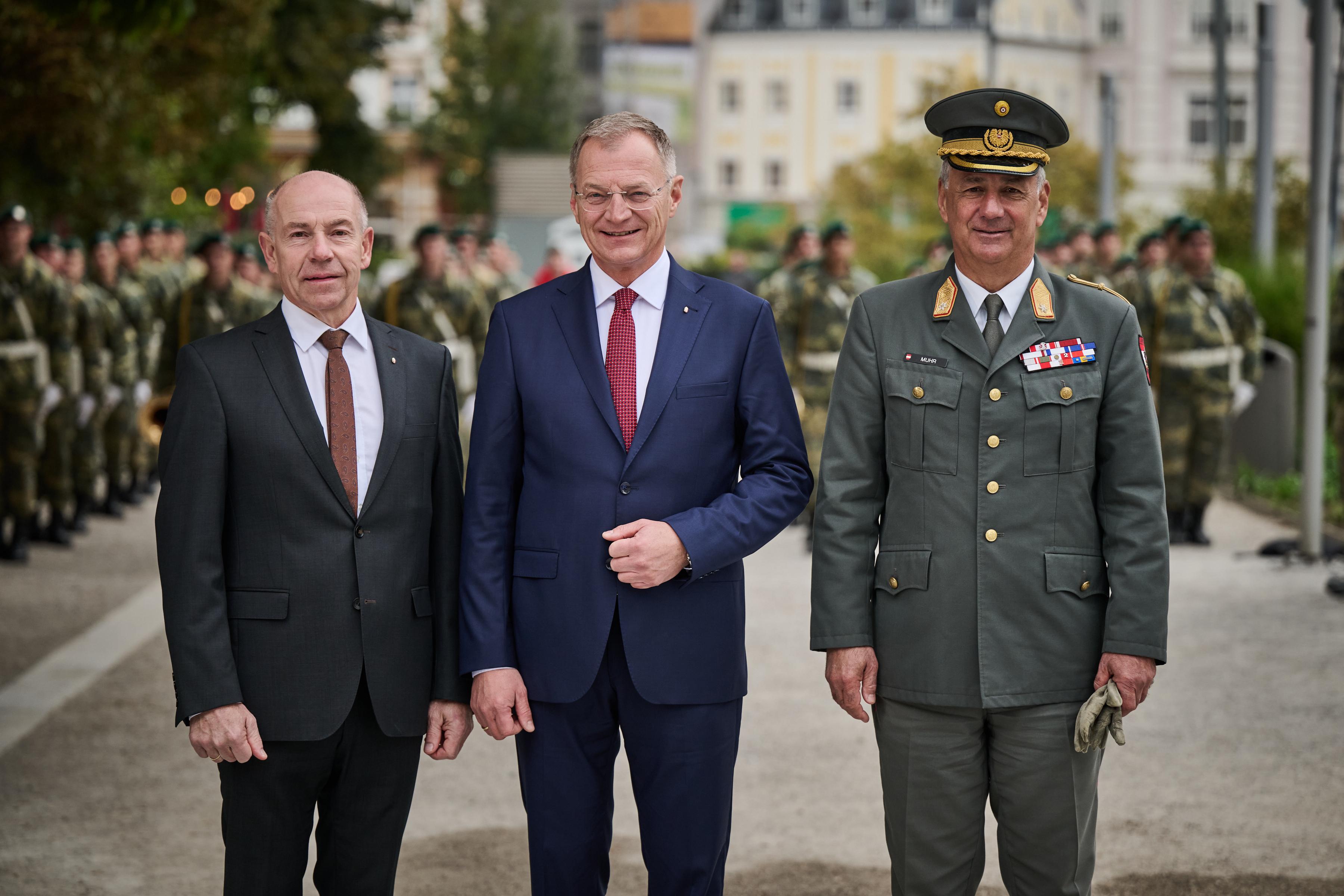 Mit einer feierlichen Flaggenparade des Bundesheeres vor dem Linzer Landhaus begann am Donnerstagvormittag der offizielle Festakt des Landes Oberösterreich zu den heurigen Jubiläen. Mit der Veranstaltung erinnerten der Oö. Landtag und die Oö. Landesregierung an das Kriegsende vor 80 Jahren, den Wiederaufbau und die Unterzeichnung des Staatsvertrags vor 70 Jahren sowie den EU-Beitritt Österreichs vor 30 Jahren. „Alle drei Jahrestage sind Teile unserer Identität. Als modernes und weltoffenes Oberösterreich, als ein Land des Miteinanders, als ein Land der Möglichkeiten“, erklärte Landeshauptmann Thomas Stelzer. Nach Friedens- und Dankesworten von Diözesanbischof Manfred Scheuer und Superintendent Gerold Lehner folgte dann im Steinernen Saal des Landhauses der zweite Akt der Jubiläumsfeier. Die Veranstaltung war der Höhepunkt des Gedenkjahres und wurde vom ORF Oberösterreich live in ORF2 übertragen.