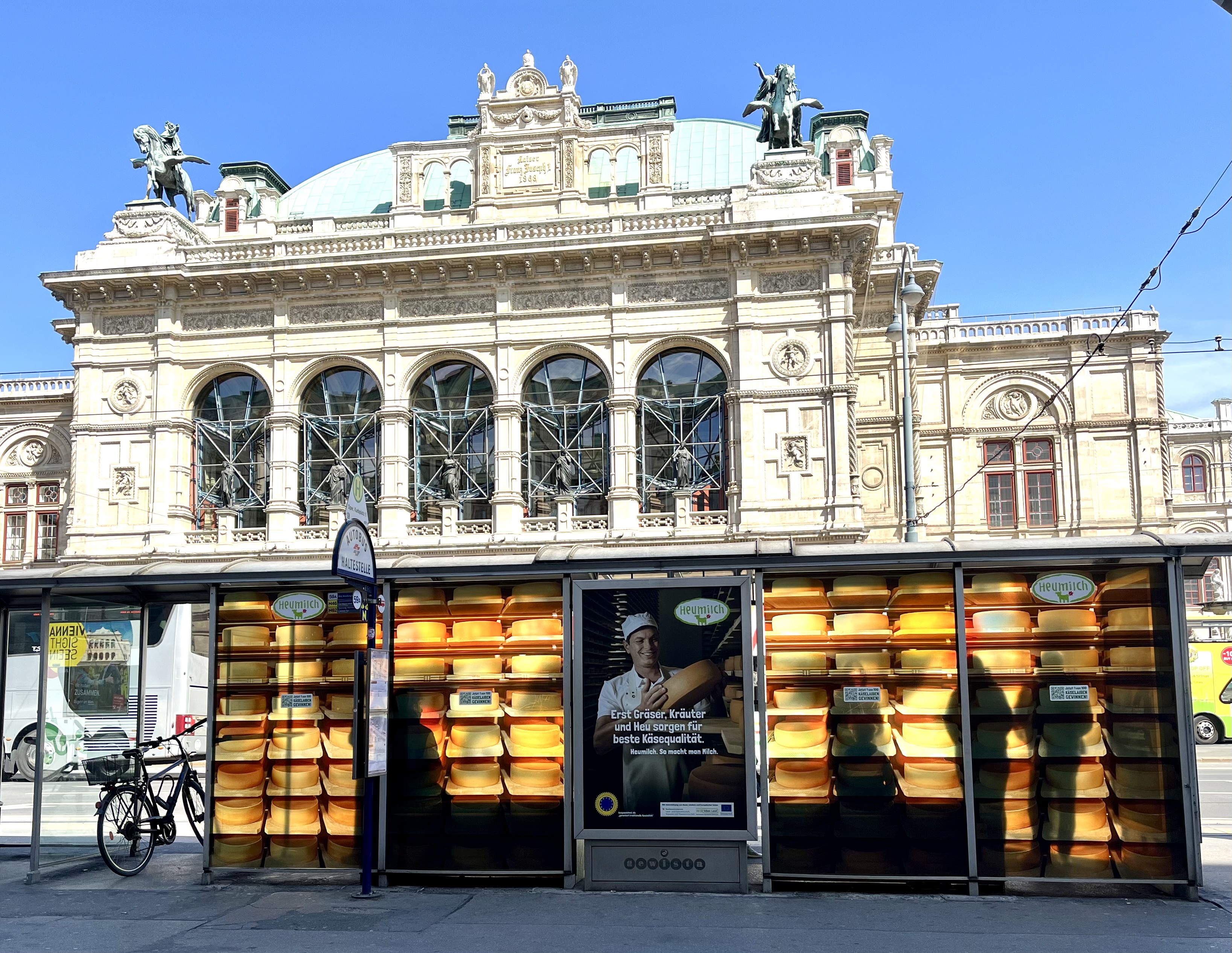 Die auffällige Werbekampagne, die Heumilch als Spezialmilch für Käse in Szene setzte, überzeugte die Fachjury. Das Wartehäuschen an der Haltestelle Wiener Oper, welches in einen „Käsekeller“ verwandelt wurde und damit die Botschaft der Heuwirtschaft kreativ in den öffentlichen Raum brachte, wurde mit dem Spitzenplatz prämiert.