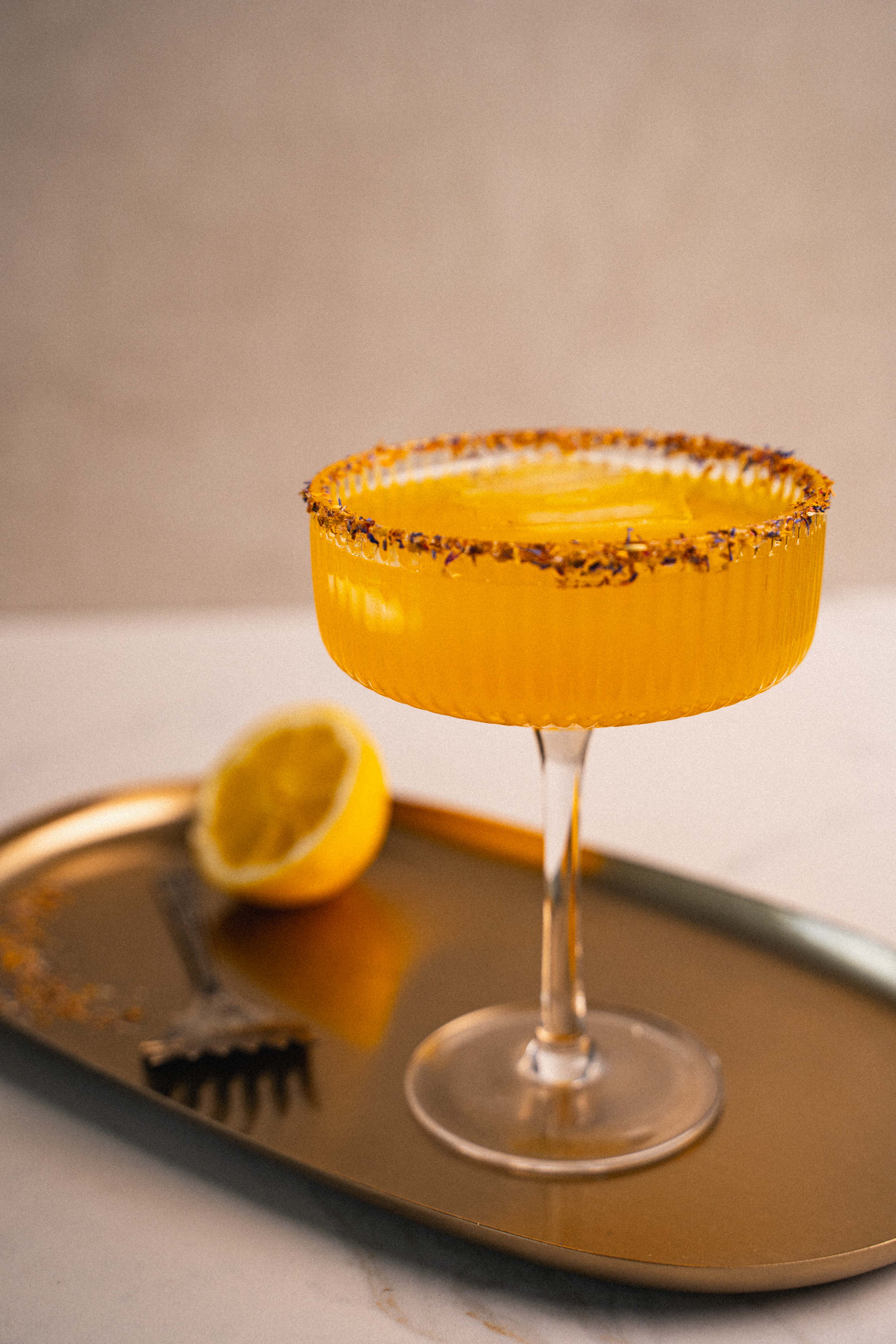 Dieser Mocktail bringt mit der fruchtig-frischen Mary Grey Teemischung, dem Kurkuma-Zitronen Sirup und einem Klecks Honig zum Süßen echtes Feierfeeling ins Glas. Die intensiv gelbe Farbe sowie der Glasrand mit Flower Power Gewürzblüten ist auch etwas fürs Auge.