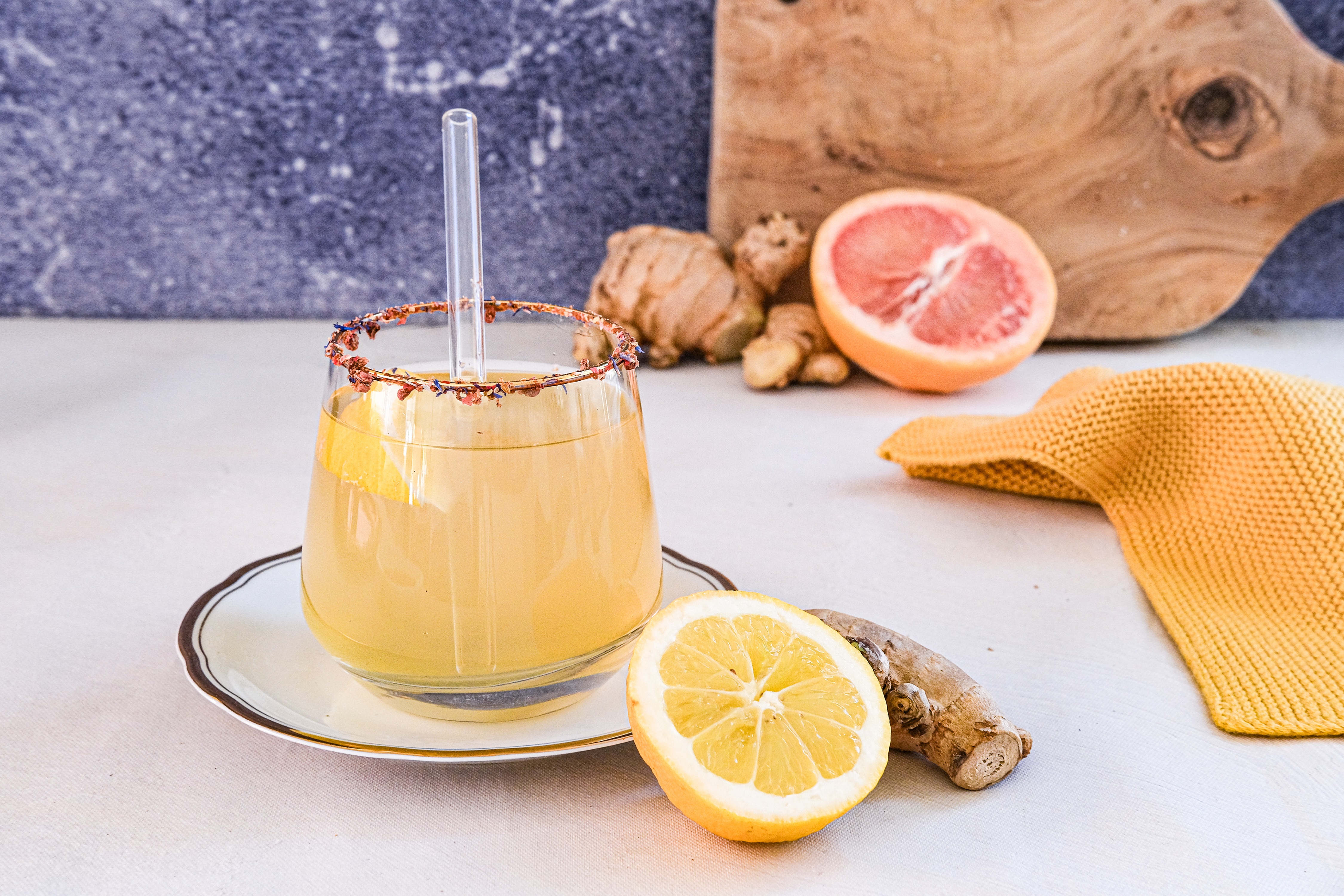 Wenn der Winter müde macht, bringt dieser Mocktail wieder Energie ins Glas. Der Wilde Lilli Sirup trifft auf einen halben Ingwer Shot und wird mit sprudelndem Mineralwasser zum Power-Drink in der kalten Jahreszeit.