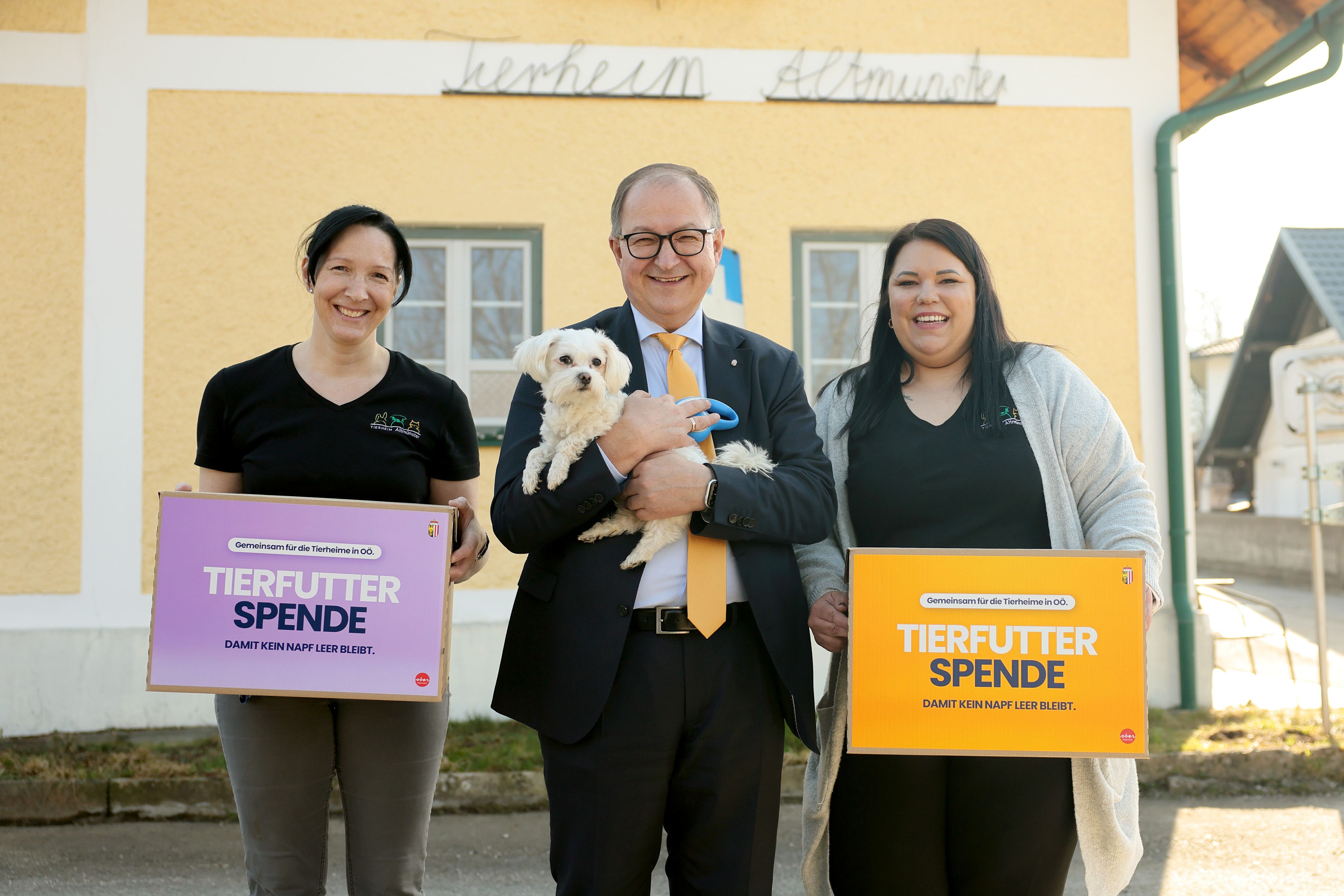 Tierschutz-Landesrat Mag. Martin Winkler besuchte das Tierheim Altmünster, um sich persönlich vor Ort über die aktuellen Herausforderungen der Einrichtung zu informieren. Im Rahmen des Besuchs übergab Landesrat Winkler eine Futterspende als Unterstützung für die tägliche Arbeit mit den Tieren.