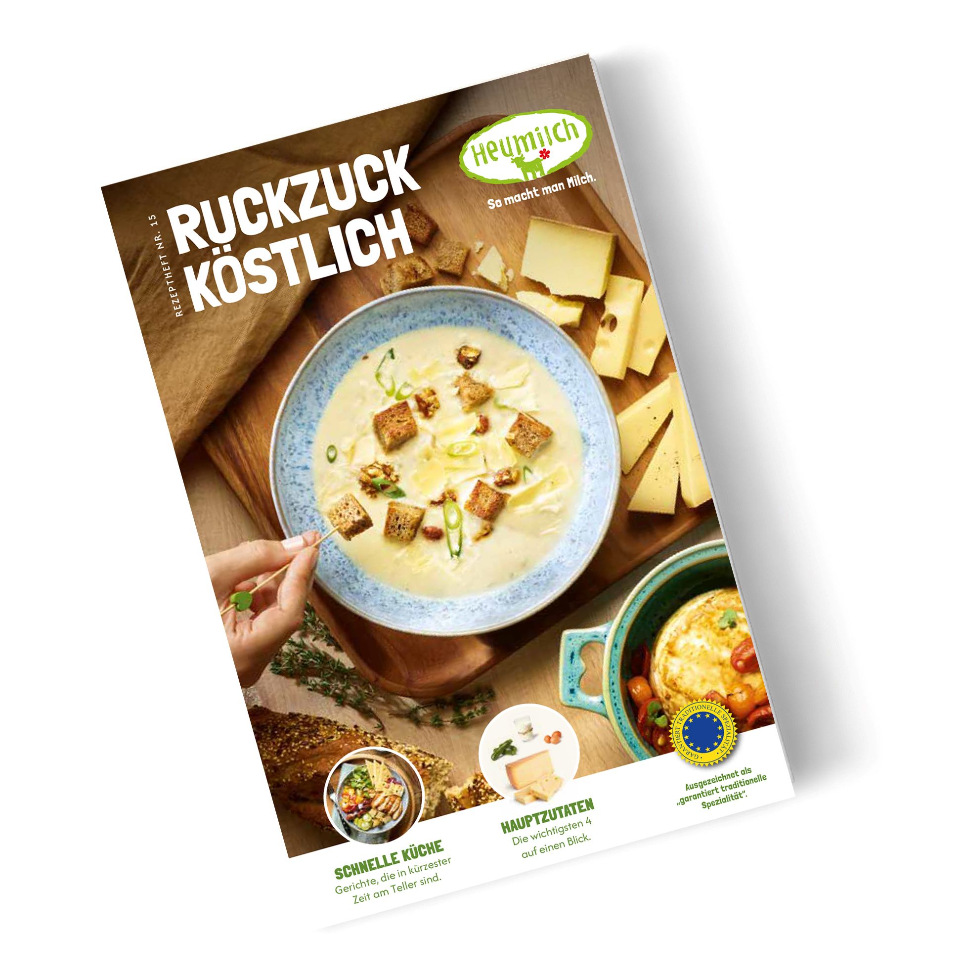 Das neue Rezeptheft „Ruckzuck köstlich“ kann ab Anfang März kostenlos online bestellt werden. Zusätzlich stehen ausgewählte Rezepte auch digital zur Verfügung. Weitere Informationen sowie Bestellmöglichkeiten finden sich unter www.heumilch.com.