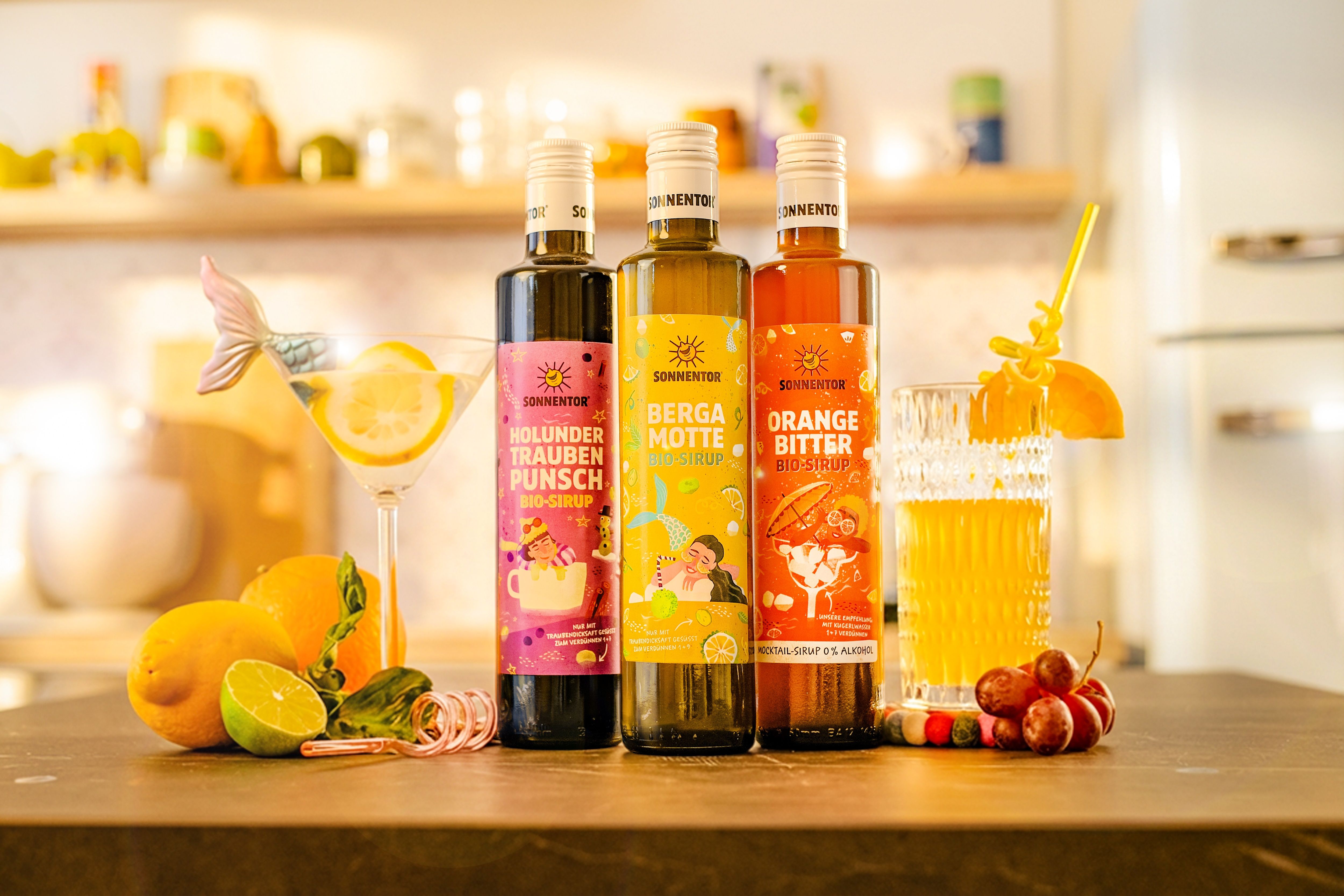 Diese Neuheiten von SONNENTOR machen Sirup-Träume wahr! Das bunte Sirup-Sortiment von SONNENTOR wird durch vier weitere köstliche Varianten ergänzt. Schon ab 1. Mai 2026 bekommen die erfrischenden Mocktail-Sirupe mit Bergamotte und Orange Bitter doppelte Verstärkung! Und der Holunder-Trauben Punsch, der ab 1. September 2026 verfügbar ist, sorgt mit Holunderbeeren, Zimt und Vanille für den winterlichen Touch. So gehen alkoholfreie Genussträume ganz einfach in Erfüllung. Im Eigenvertrieb hat SONNENTOR außerdem ebenfalls ab 1. Mai eine exklusive Besonderheit zu bieten – den Einhorn Sirup!