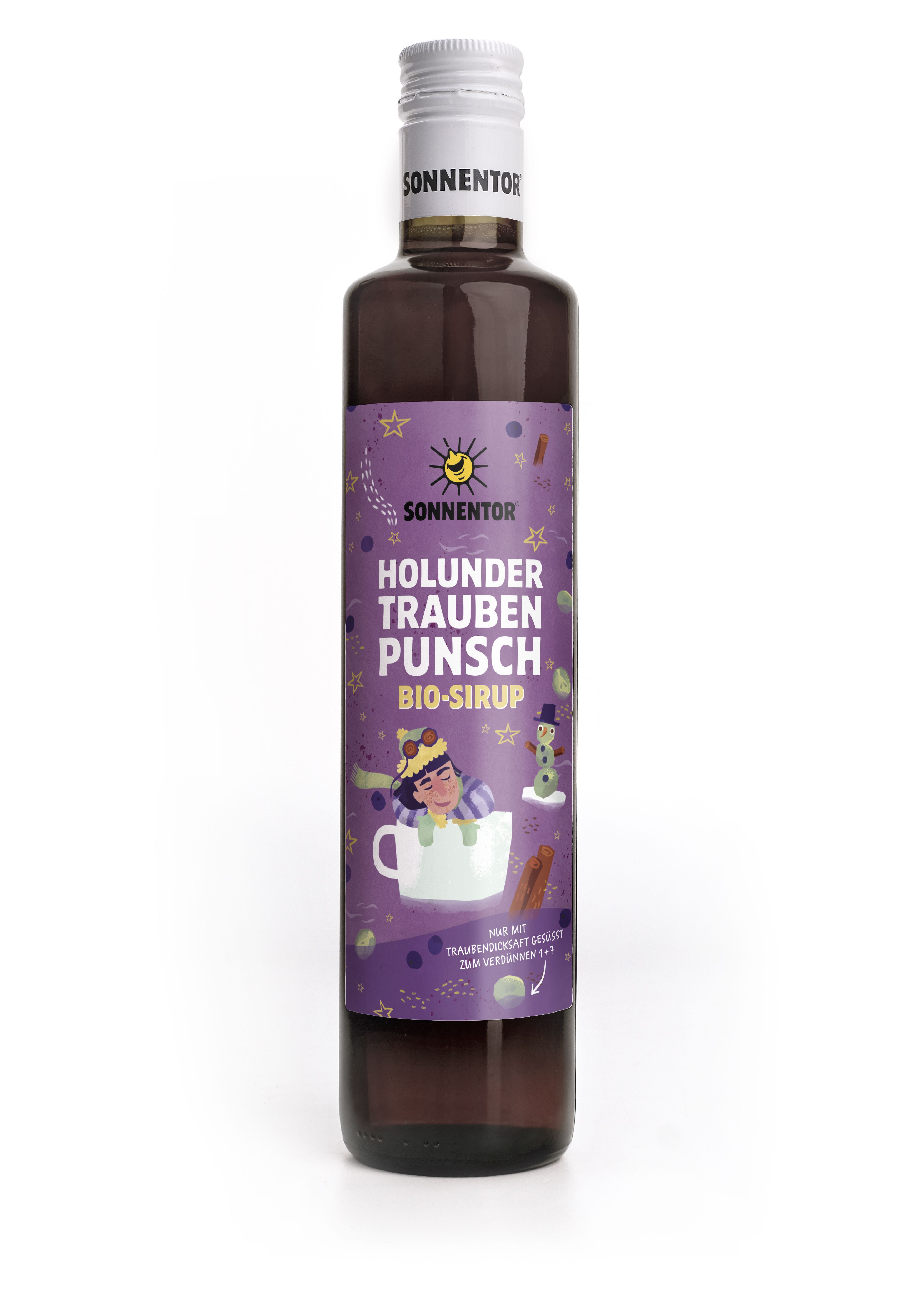 Dieser Sirup ist das ideale Begleitgetränk in der Winterzeit. Holunderbeeren und Trauben sorgen für eine fruchtige Note und Zimt sowie Vanille verleihen dieser Kreation einen weihnachtlichen Touch. Das Mischen geht ganz einfach: Ein Teil Sirup mit sieben Teilen heißem Wasser verdünnen und fertig ist das Heißgetränk. Für die Süße ist Traubendicksaft verantwortlich. Natürlich kommt der Sirup ganz ohne Alkohol aus.