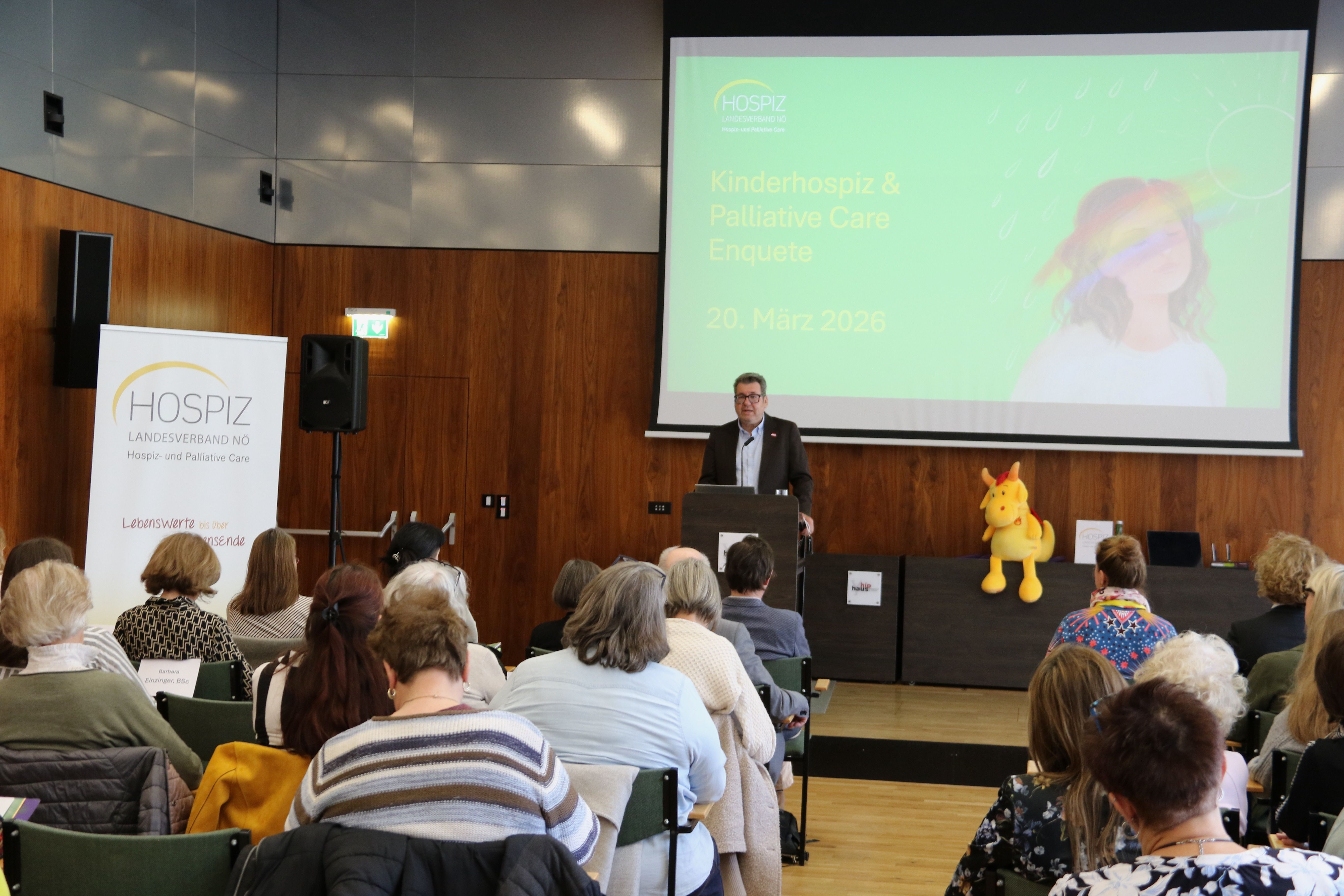 PRESSEMITTEILUNG Hospiz & Palliative Care Kinderenquete 2026: Parallelwelten: trotzdem und gleichzeitig St. Pölten, 20. März 2026 - Unter dem Titel „Parallelwelten – trotzdem und gleichzeitig“ lud der Landesverband Hospiz Niederösterreich heute am Weltgeschichtentag zur Hospiz & Palliative Care Kinderenquete in das Bildungshaus St. Hippolyt in St. Pölten. Fachkräfte, Interessierte sowie Vertreterinnen und Vertreter aus Politik und Gesundheitswesen nutzen die Gelegenheit, sich mit aktuellen Herausforderungen und Entwicklungen in der pädiatrischen Hospiz & Palliative Care Arbeit auseinanderzusetzen.