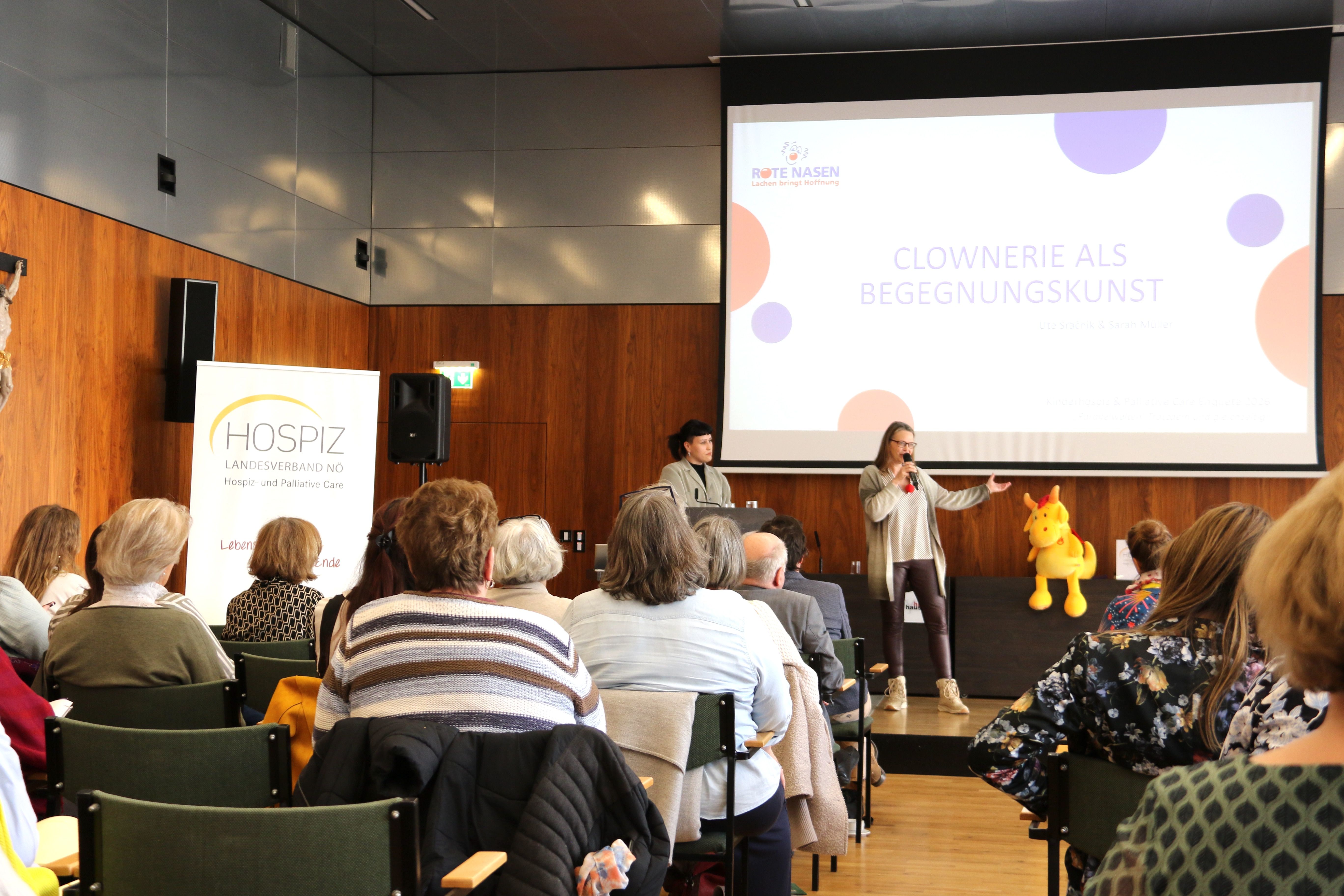 Humor als Brücke (Begegnungen, die berühren) wurden praxisnah und gelebt von den Roten Nasen durch Ute Stracik aufgegriffen.