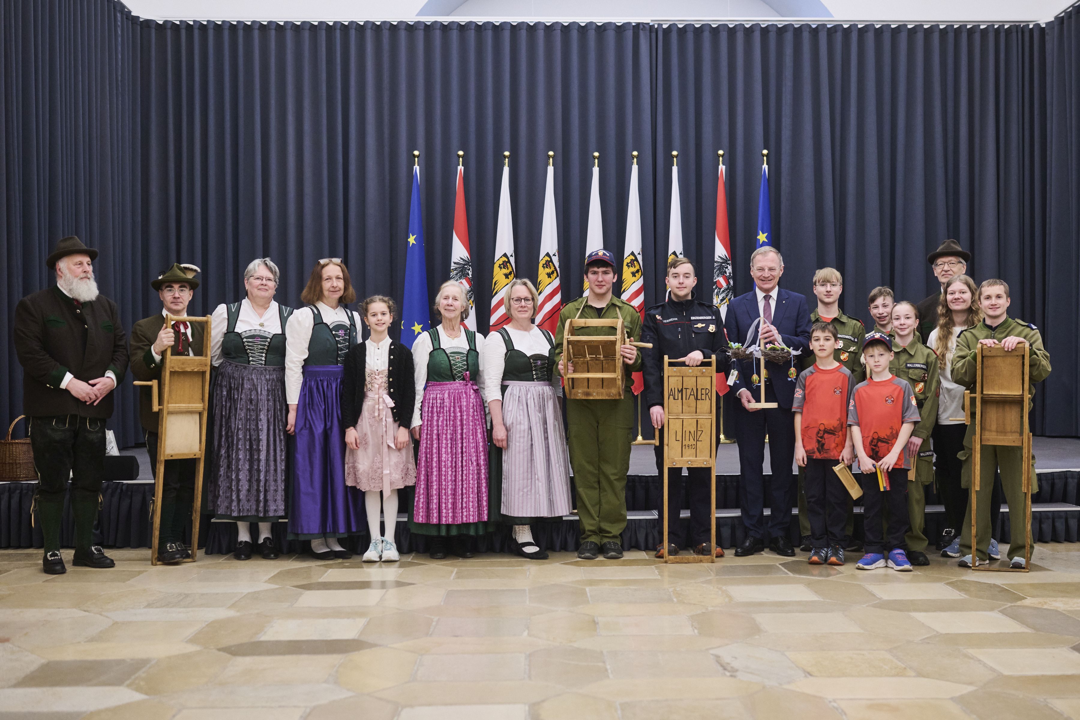 Mit lautem Klappern und viel Engagement junger Oberösterreicherinnen und Oberösterreicher sind am Gründonnerstag die Osterratschen-Kinder wieder ins Linzer Landhaus eingezogen. Die Almtaler Linz – Verein für Volks- und Brauchtumspflege – sowie die Feuerwehrjugend aus Pechgraben wurden von Landeshauptmann Thomas Stelzer herzlich empfangen.