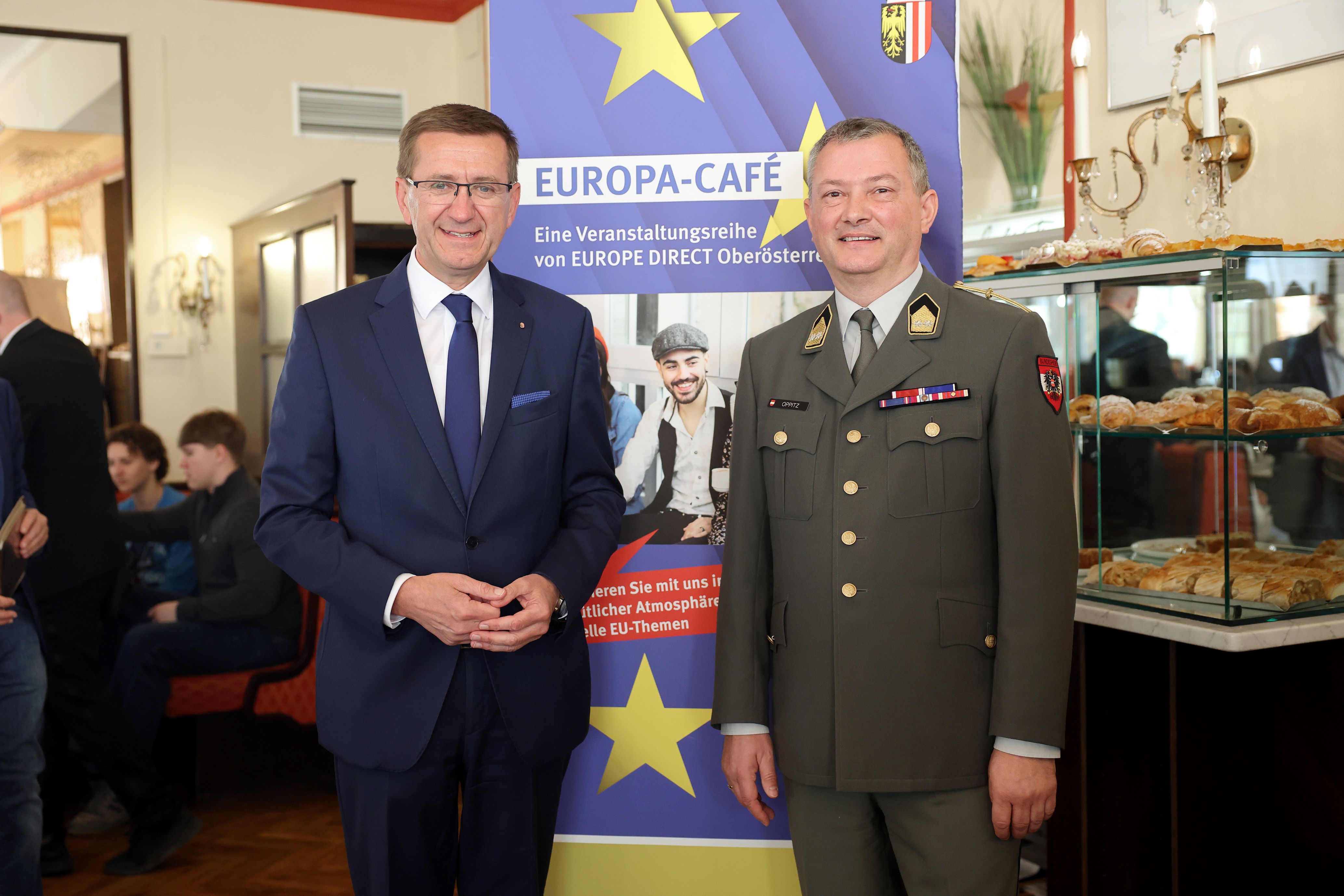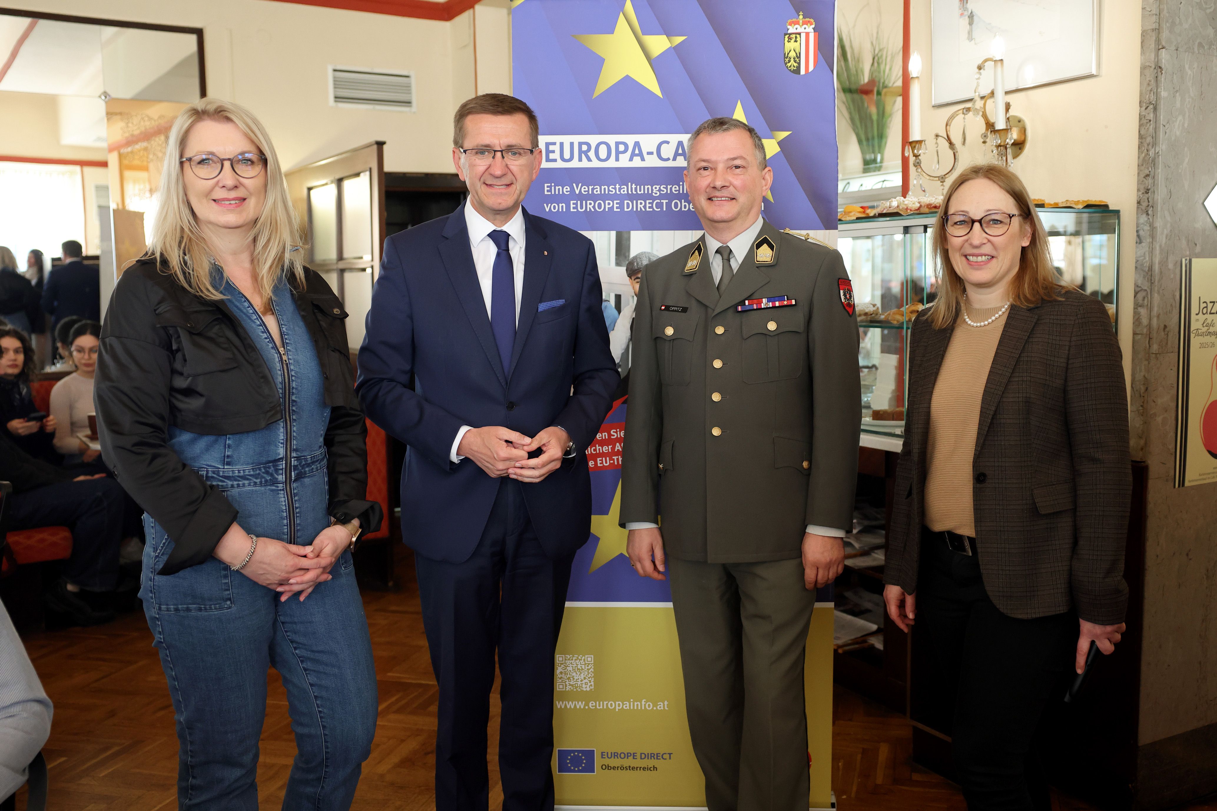 Das Europa Café ist eine Veranstaltungsreihe des Europabüros „Europe Direct“ des Landes Oberösterreich. Im Rahmen dieser Reihe werden Interessierte, insbesondere Schülerinnen und Schüler, eingeladen, aktuelle europapolitische Themen mit Expertinnen und Experten zu diskutieren und unterschiedliche Perspektiven kennenzulernen.