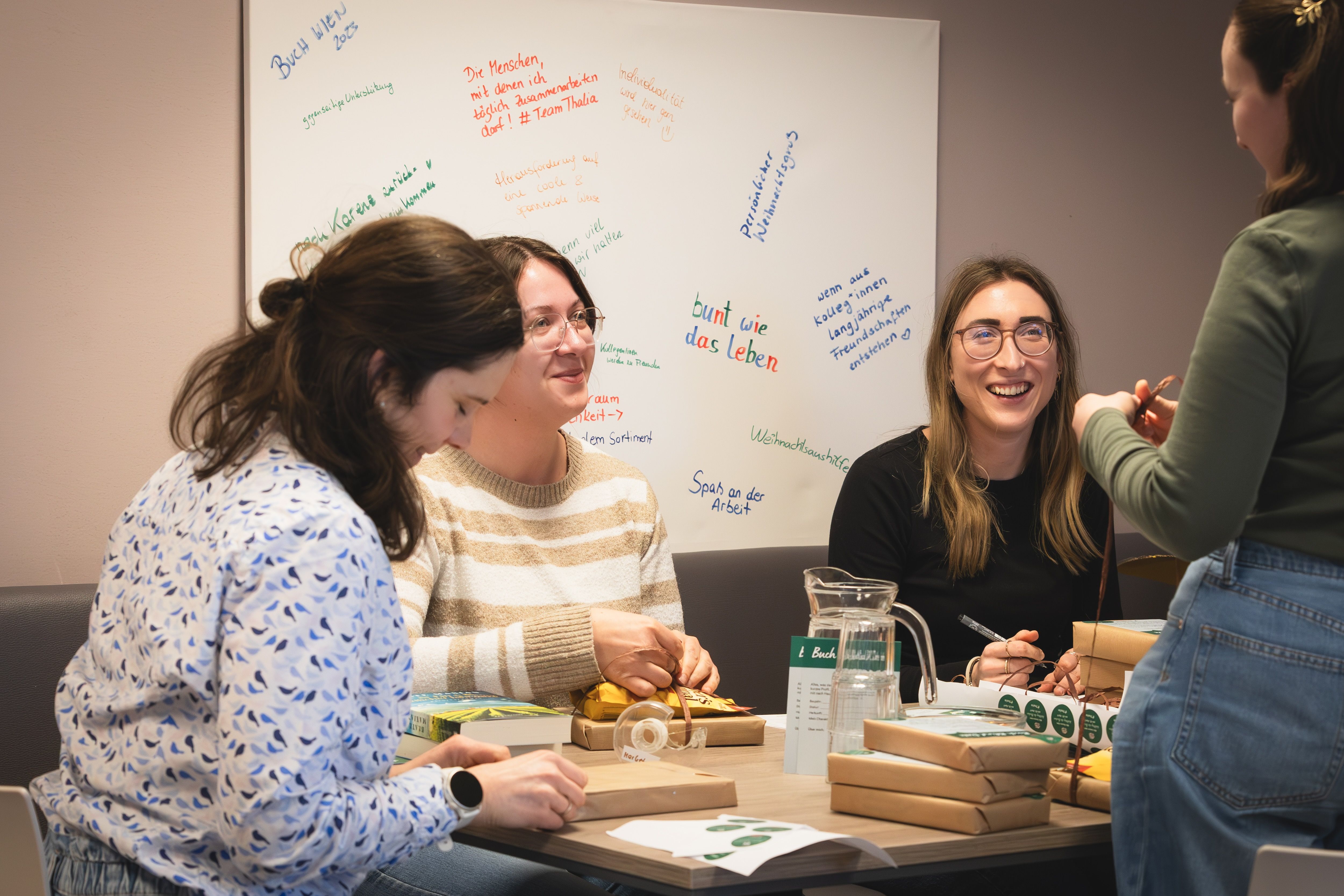 Hinter der Aktion steckt echte Handarbeit: Rund 20 Mitarbeitende aus verschiedenen Abteilungen der Thalia Zentrale in Linz haben die Bücher an einem gemeinsamen Team-Tag verpackt und mit handgeschriebenen Steckbriefen versehen. Jedes Blind Date verrät lediglich das Genre und einen kurzen Hinweis auf den Inhalt. Der Titel bleibt bis zum Auspacken ein Geheimnis. Verlagspartner Penguin Random House stellt die Bücher zur Verfügung.