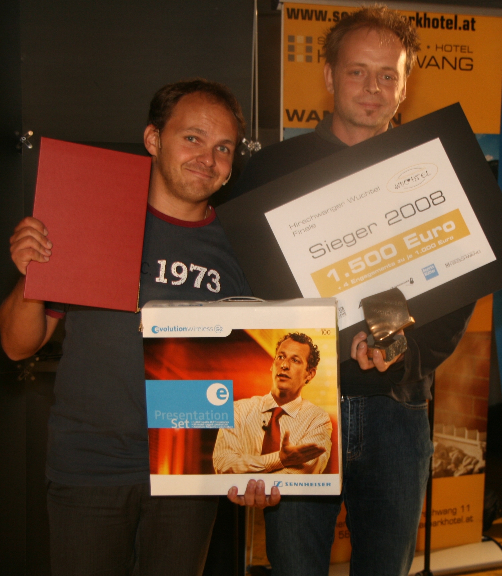 Sensationelle Stimmung beim Finale des niederösterreichischen Kabarett-Preises der AKNÖ Wien (OTS) - Das Zelt tobte als das Who is Who der österreichischen Nachwuchskabarettisten-Szene ihr Können beim Finale um die Hirschwanger Wuchtel zum Besten gab. Dem Publikum, das beim großen niederösterreichischen Kabarett-Preis traditionell mitbestimmt wer aufs Stockerl darf, wurde seine Entscheidung nicht leicht gemacht: Vom Quatsch Comedy Club-Starter über den Steirer Kleinkunstpreisträger bis hin zur Simpl-Neuentdeckung - alle wollten mit dabei sein und buhlten um die Gunst von Jury und Publikum. Schlussendlich konnte sich das Kabarett-Duo Blözinger gegen die starke Konkurrenz durchsetzen und gewann die begehrte Trophäe. Und zum ersten Mal in der Geschichte der Hirschwanger Wuchtel wurde der zweite Preis heuer doppelt vergeben: Helmut Reisinger und Josef Burger bekamen gleich viele Stimmen von Publikum und Jury und landeten damit ex aequo auf dem zweiten Platz. Die Spezialität der Gewinner, dem Kabarett-Duo Blözinger bestehend aus Roland Penzinger und Robert Blöchl, ist die Jonglier-Comedy. In ihrer bisherigen Karriere durften die beiden ihr Talent schon bei den Clini-Clowns unter Beweis stellen. Im Auszug aus ihrem aktuellen Programm widmeten sie sich dem Kabarett-Dauerbrenner "Liebe". Auf Platz zwei landeten gleich zwei talentierte Kabarettisten. Helmut Reisinger, dessen Alter Ego Max Macho "so ist wie es sich jeder Mann wünscht zu sein" und der Burgenländer Josef Burger der mit Auszügen aus seinem dritten Programm "Artgerecht" auf der Bühne stand. Während sich Reisinger thematisch mit der Paarbeziehung auseinandersetzt, widmet sich Burger der Gesundheit und "blickt der evolutionsbedingten Todesangst beim Joggen tapfer in die Augen". AKNÖ-Direktor Helmut Guth zeigte sich mächtig stolz anlässlich der sechsten Vergabe der Hirschwanger Wuchtel: "Wir sind mit dem Ziel angetreten, ein neues Kulturangebot für Niederösterreich zu schaffen und das ist uns geglückt. Zudem fördern wir mit der Hirschwanger Wuchtel Nachwuchs-Kabarettisten und geben ihnen die Chance, Bühnenerfahrung zu sammeln - eine Win-Win-Situation für alle." Ein Zuckerschlecken ist der Auftritt für die Neo-Kabarettisten freilich trotzdem nicht: Zwar ist das Lampenfieber vor dem Auftritt immer groß, so der einhellige Tenor, die verschärfte Wettbewerbs-Situation treibt die Nervosität aber in ungeahnte Höhen: Bei der Hirschwanger Wuchtel haben die Kabarettisten nämlich nur zwölf Minuten, um Publikum und Jury von ihrem Können zu überzeugen. Nach einer halben Minute Überziehung der Zeit geht das Licht aus, nach einer weiteren halben Minute der Ton. Dann kommt der nächste dran. Rückfragehinweis: Reinhard Kosik, 01 58883 1264 Bild(er) zu dieser Aussendung finden Sie im AOM/Original Bild Service, sowie im OTS Bildarchiv unter http://bild.ots.at . Rückfragehinweis: AKNÖ Öffentlichkeitsarbeit Tel.: (01) 58883-1252 mailto:[email protected] http://noe.arbeiterkammer.at *** OTS-ORIGINALTEXT PRESSEAUSSENDUNG UNTER AUSSCHLIESSLICHER INHALTLICHER VERANTWORTUNG DES AUSSENDERS - WWW.OTS.AT *** OTS0162 2008-09-01/12:26 011226 Sep 08