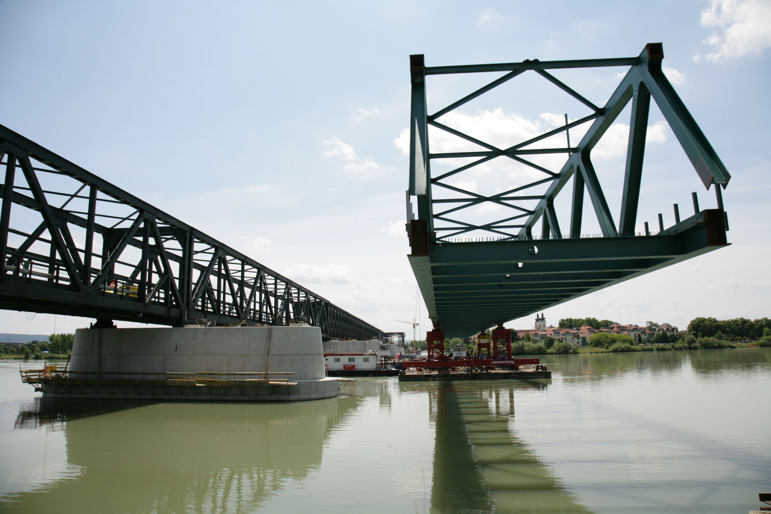 Einschwimmen des 1. Brückenbauteils der Eisenbahn-Donaubrücke Tulln - BILD