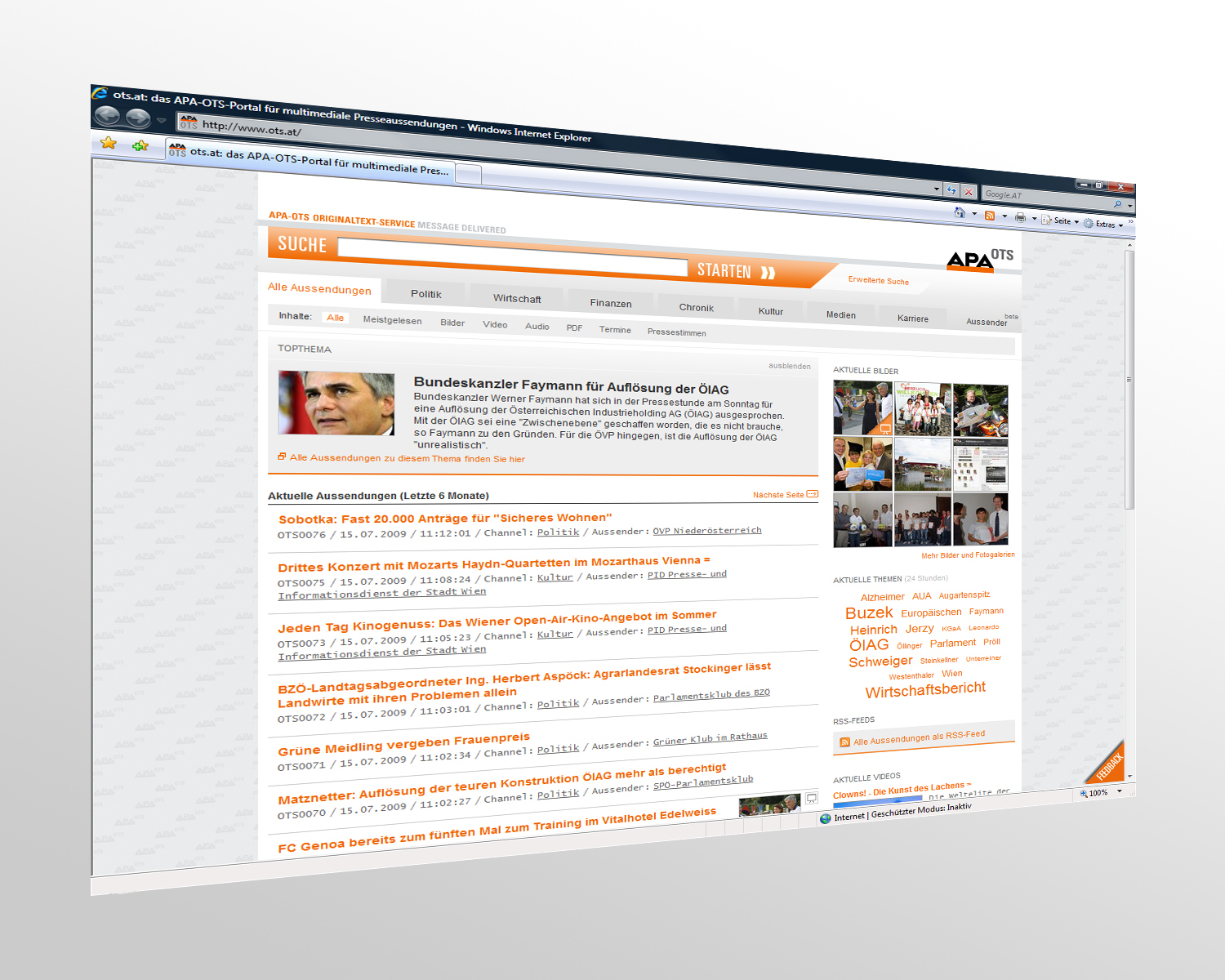 Darstellung der OTS-Aussendungen und der Bilder übersichtlich und