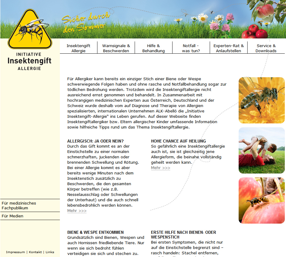 Neue Initiative sensibilisiert für Risiko und informiert über Behandlungsmöglichkeiten Wien (OTS) - Pro Jahr sterben in Europa rund 200 Menschen an den Folgen eines Bienen- oder Wespenstiches. Trotzdem wird die Insektengiftallergie nicht ausreichend ernst genommen - nur etwa jeder fünfte Allergiker sucht Hilfe beim Arzt. Um das Bewusstsein in der Öffentlichkeit zu schärfen, rief das auf Diagnostik und Therapie allergischer Erkrankungen spezialisierte Pharmaunternehmen ALK-Abelló in Österreich, Deutschland sowie der Schweiz in Zusammenarbeit mit einem länderübergreifenden medizinischen Beirat die "Initiative Insektengift-Allergie" ins Leben. Unter dem Motto "Sicher durch den Sommer" erhalten Betroffene auf der Webseite www.initiative-insektengift.at umfassende Information über Warnzeichen, Vorbeugung, Behandlung und richtiges Verhalten im Notfall sowie Tipps und Hilfestellung. Ein Bienen- oder Wespenstich ist schmerzhaft und unangenehm. Bis auf eine gerötete Schwellung und Juckreiz haben gesunde Menschen allerdings keine Probleme. Damit das Gift der Hautflügler zu einer ernst zu nehmenden Bedrohung wird, müsste ein gesunder Erwachsener mindestens 100-mal gestochen werden. Bei etwa 300.000 Österreichern reicht allerdings bereits ein einziger Stich, um zur lebensbedrohlichen Gefahr zu werden. "Bei Allergikern setzt der Körper einen Abwehrmechanismus in Gang, der im Extremfall tödlich endet. Jeden Sommer landen Hunderte in der Notaufnahme und rund 4 bis 5 Menschen sterben in Österreich pro Jahr an den Folgen eines Bienen- oder Wespenstiches", weiß der Intensivmediziner OA Dr. Rainer Schmid vom Wiener Wilhelminenspital. 80 Prozent aller Allergiker gehen nicht zum Arzt Trotz der akuten Lebensgefahr, wird eine Insektengiftallergie aber nach wie vor unterschätzt und damit unzureichend behandelt. "Viel zu wenige Allergiker lassen ihre Beschwerden bei einem Allergie-Experten abklären", kritisiert Priv.-Doz. Mag. Dr. Stefan Wöhrl, Oberarzt an der Allergie-Ambulanz der Universitätsklinik für Dermatologie Wien die Sorglosigkeit viele Österreicher. Dabei ist die bei weitem gefährlichste Form der Allergie am besten behandelbar: "So gefährlich eine Insektengiftallergie auch ist, sie ist gleichzeitig jene Allergieform, die durch eine entsprechende Therapie sehr erfolgreich behandelt werden kann." Initiative schafft Bewusstsein ... Um das Bewusstsein für die Gefährlichkeit einer Insektengiftallergie zu stärken, rief das auf Diagnostik und Therapie allergischer Erkrankungen spezialisierte Pharmaunternehmen ALK-Abelló gemeinsam mit einem medizinischen Beirat - bestehend aus hochrangigen österreichischen, deutschen und Schweizer Allergie-Experten - die "Initiative Insektengift-Allergie" ins Leben. "Unter dem Motto "Sicher durch den Sommer" geht es bei dieser neuen Initiative darum, den Betroffenen die Gefahren einer allergischen Reaktion durch einen Bienen- oder Wespenstich vor Augen zu führen und gleichzeitig zu zeigen, wie man sich vor den lebensbedrohlichen Folgen einer schweren allergischen Reaktion schützen kann", beschreibt Wöhrl die Ziele der Kampagne. Auch Kinderfachärztin Univ.-Prof. Dr. Eva-Maria Varga von der Univ.-Klinik für Kinder- und Jugendheilkunde in Graz betont: "Insektengiftallergien dürfen keinesfalls auf die leichte Schulter genommen werden. Wer nach einem Bienen- oder Wespenstich mit Atemnot, Juckreiz, Schwindel oder Herzrasen, also systemisch allergisch reagiert, kann unter Umständen auch einen lebensbedrohlichen allergischen Schock erleiden. Bei Kindern sind Todesfälle durch eine Insektengiftallergie insgesamt seltener als bei Erwachsenen. Dennoch müssen erste Anzeichen einer allergischen Reaktion ernst genommen werden." ... und informiert über Behandlungsoption Ein weiteres Ziel der Initiative liegt darin, Allergiker besser über Behandlungsmöglichkeiten und richtiges Verhalten im Notfall zu informieren. Varga: "Ein Großteil der Allergiker weiß nicht, dass mit der Allergie-Impfung (spezifische Immuntherapie) eine höchst erfolgreiche Therapiemöglichkeit zur Verfügung steht, die sicheren und langfristigen Schutz vor der gefährlichen allergischen Reaktion bietet und von der Weltgesundheitsorganisation WHO auch ausdrücklich für Kinder ab dem 5. Lebensjahr empfohlen wird. Kaum eine andere lebensbedrohliche Krankheit kann so effektiv behandelt werden." Leider nimmt nur einer von zwanzig Insektengiftallergikern diese Chance auf Heilung wahr, "deshalb wollen wir in Österreich, Deutschland und der Schweiz in den nächsten Wochen verstärkt auf diese Schutzmöglichkeit durch die Allergie-Impfung hinweisen." Linktipp www.initiative-insektengift.at - Sicher durch den Sommer! Mehr Presseinfos und Bildmaterial in Printqualität gibt's auch unter www.initiative-insektengift.at Hinweis: O-Töne unter www.o-ton.at Zu diesem Thema gibt es auch eine Audio-Aussendung. O-Töne der Experten Varga, Wöhrl und Schmid sind unter www.o-ton.at abrufbar! Bild(er) zu dieser Aussendung finden Sie im AOM/Original Bild Service, sowie im OTS Bildarchiv unter http://bild.ots.at Rückfragehinweis: ~ und Abstimmung Experten-Interviews & Bildmaterial: Elisabeth Leeb, Sabine Figo ikp Wien (Pressestelle der Initiative Insektengift-Allergie in Österreich) T: 01/524 77 90 E: [email protected], [email protected] ~ *** OTS-ORIGINALTEXT PRESSEAUSSENDUNG UNTER AUSSCHLIESSLICHER INHALTLICHER VERANTWORTUNG DES AUSSENDERS - WWW.OTS.AT *** OTS0068 2009-08-05/10:52 051052 Aug 09