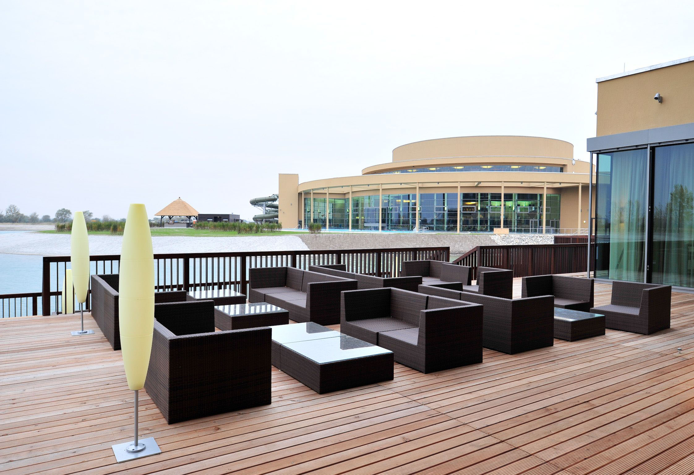 direktem Strand und Terrassen an einen weitläufigen See sein. Sie