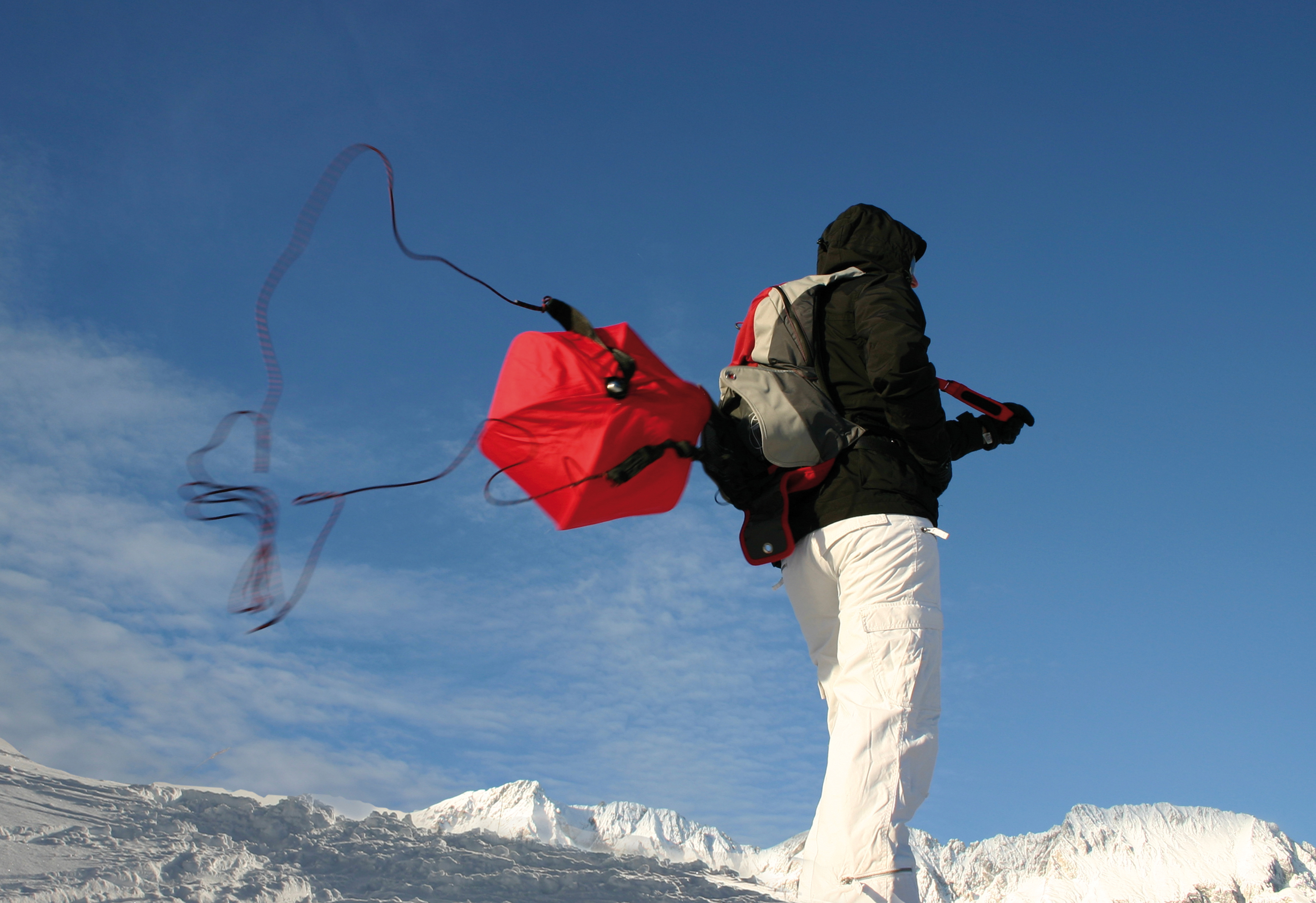 Kommt der Verwender in eine Lawine zieht er an der Reißleine. Die