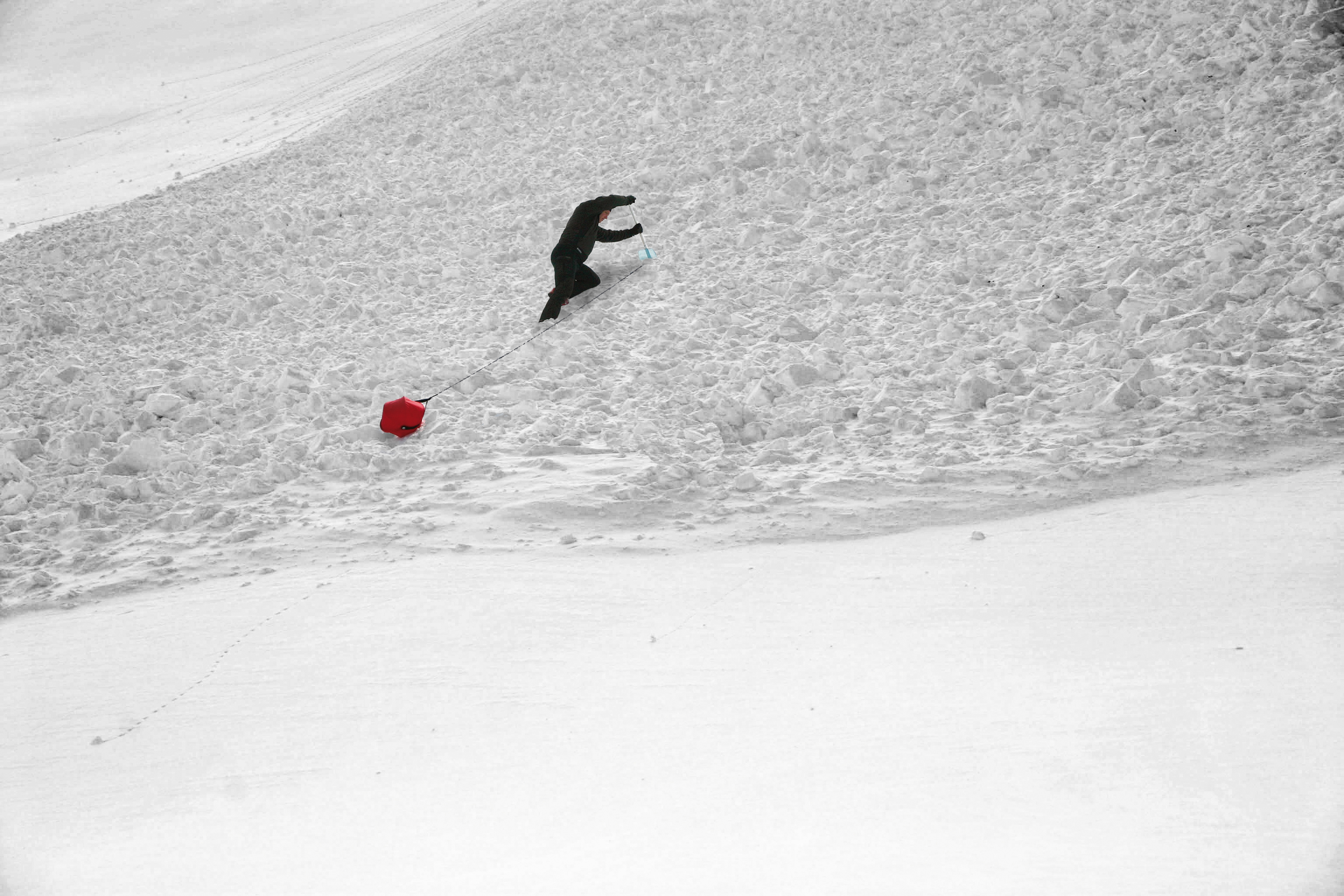 genügt. Mitten am Lawinenkegel eine rote Boje! Das ist der Avalanche