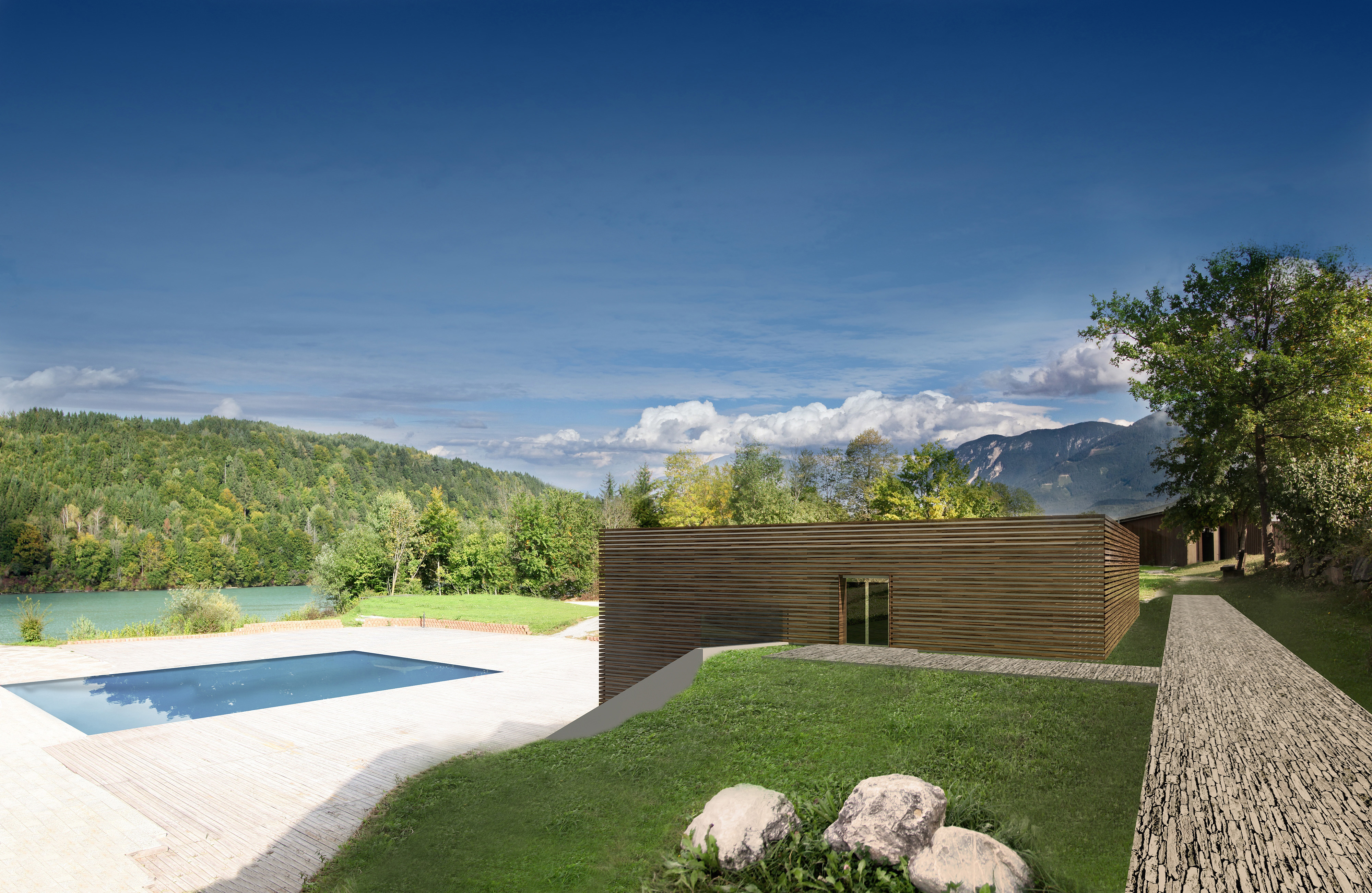 Schwimmteich und direkt an der Drau gelegen, bildet einen Ort der