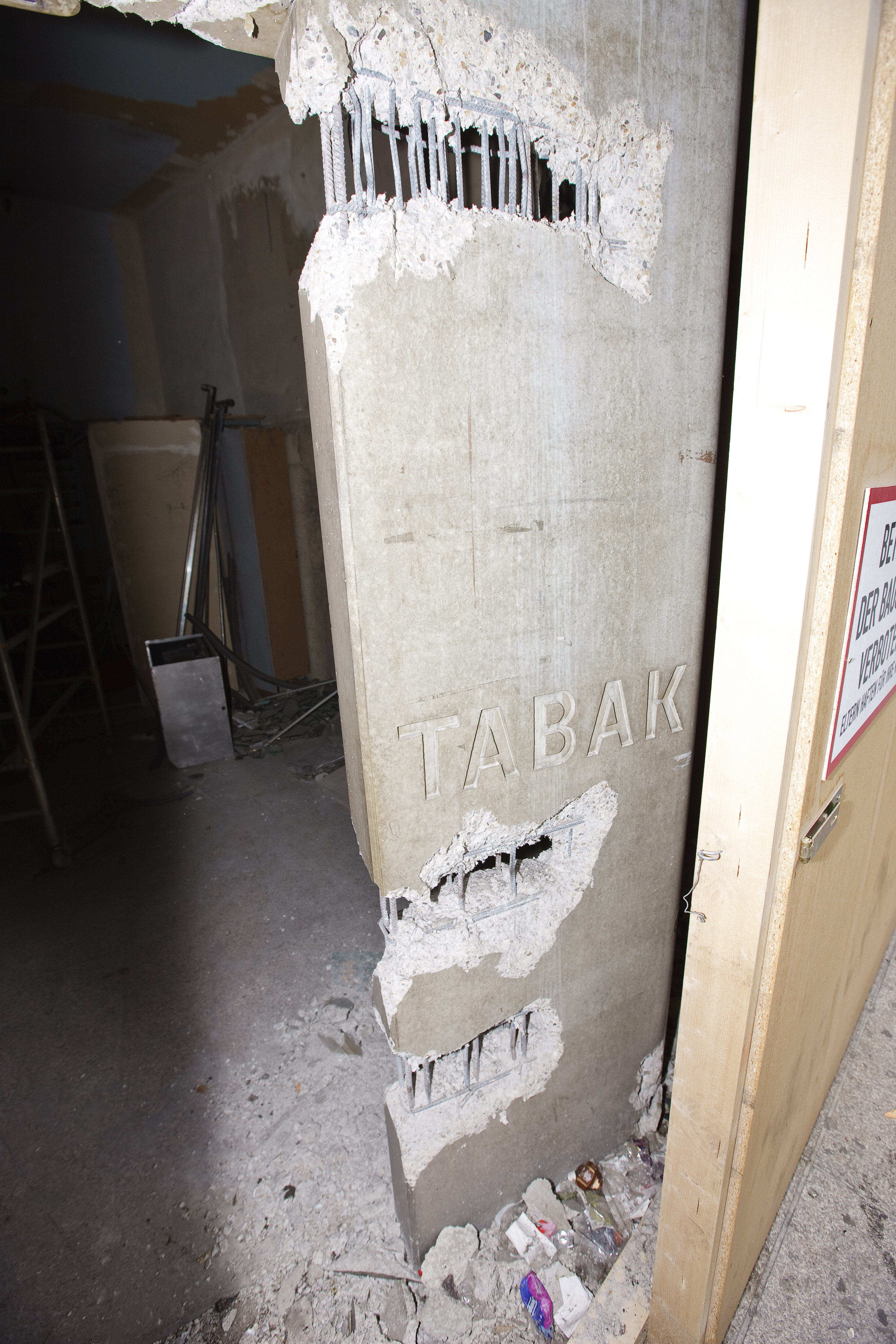 einem nahezu vollständig zerstörten, 15 Jahre alten Stahlbetonportal