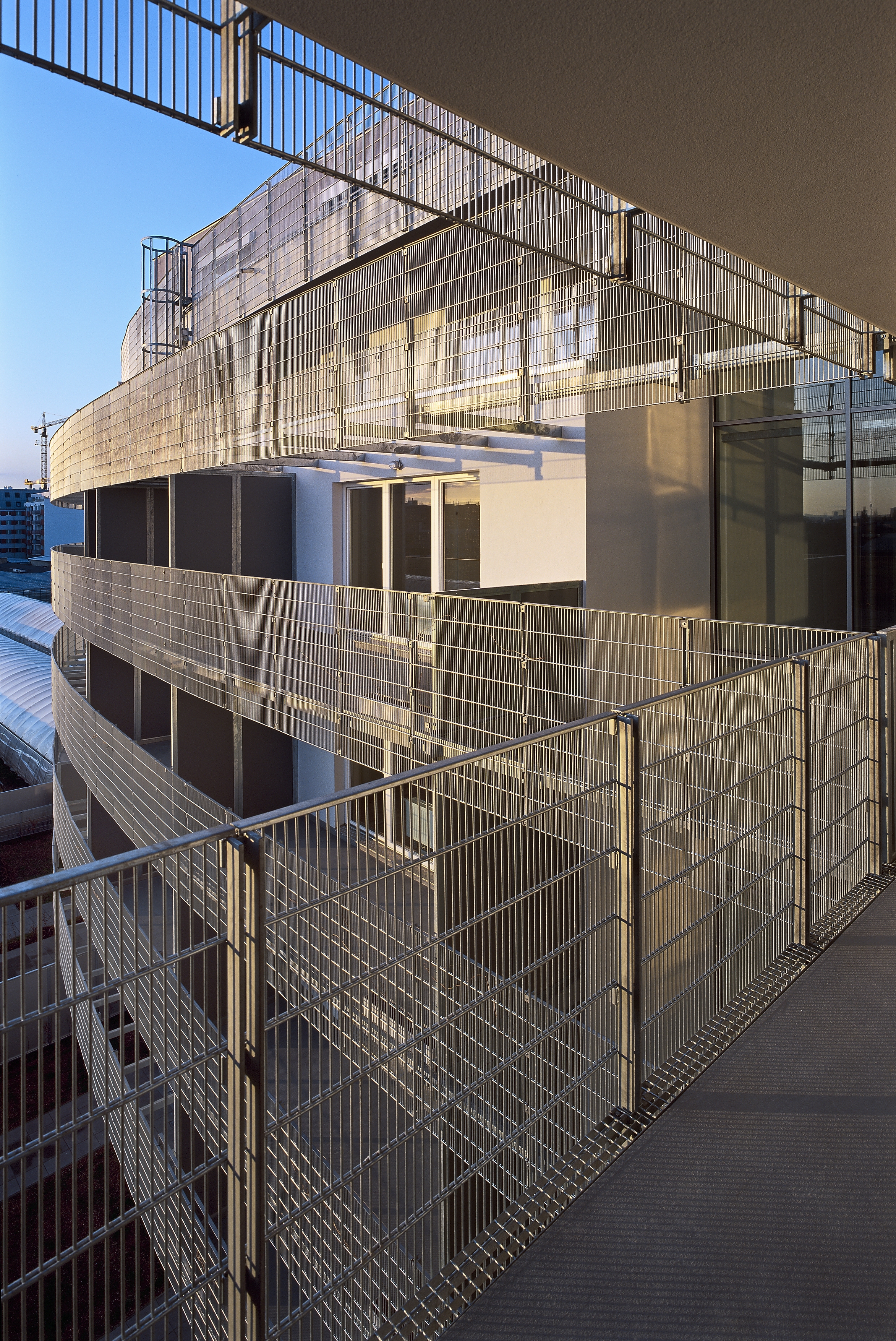 "Zugangsbrücken", im linearen Trakt mit großzügigen Vorplätzen. Nicht