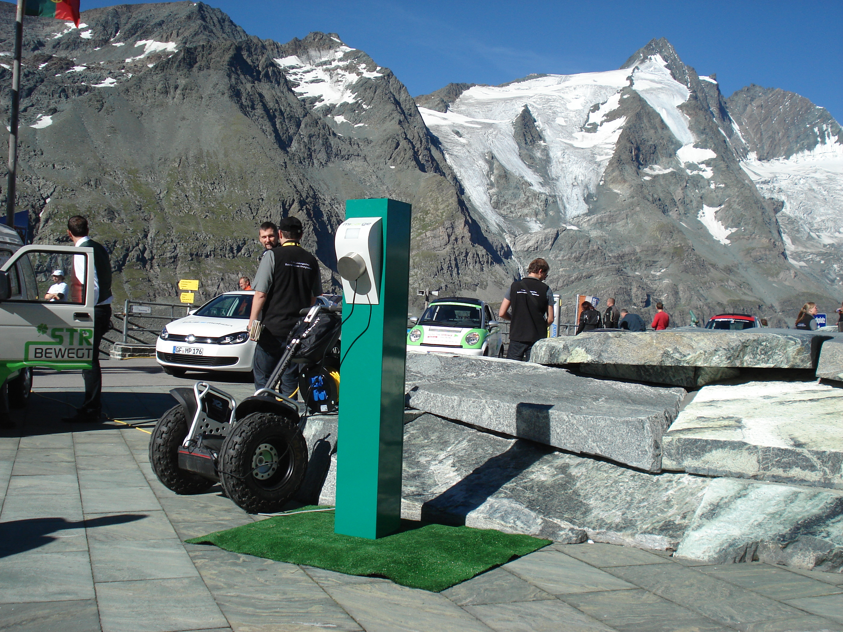 Sauper Umweltdatentechnik aus Klagenfurt präsentierte anlässlich der "Leistungsschau Elektromobilität" auf dem Großglockner die höchst gelegene Stromtankstelle Österreichs.