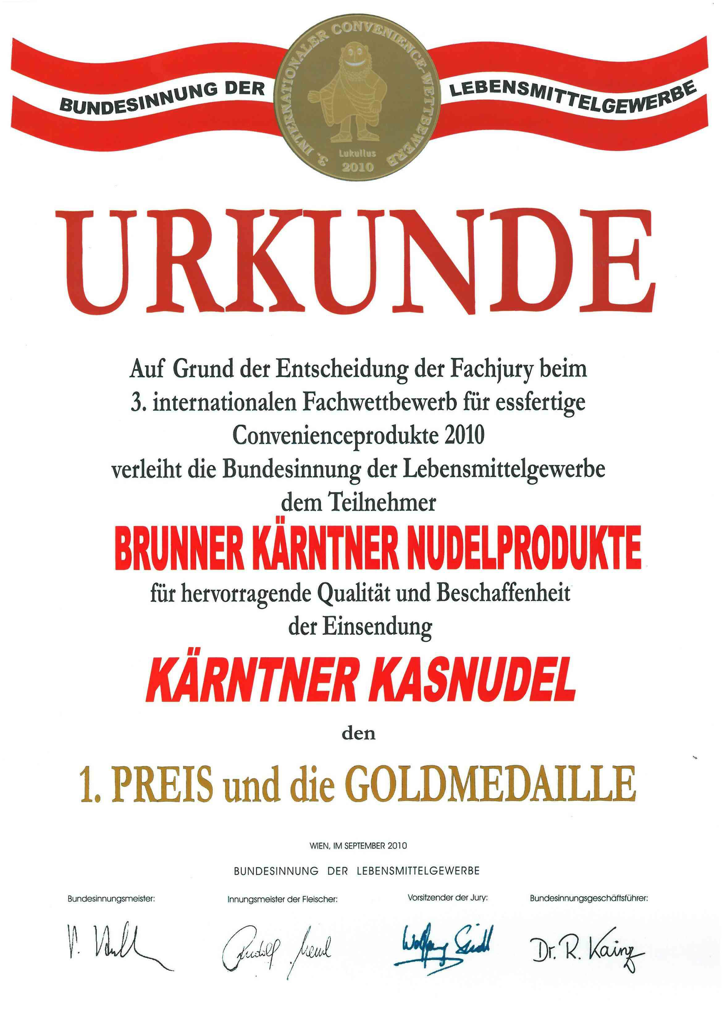 3 mal GOLD für BRUNNER Kärntner Nudel