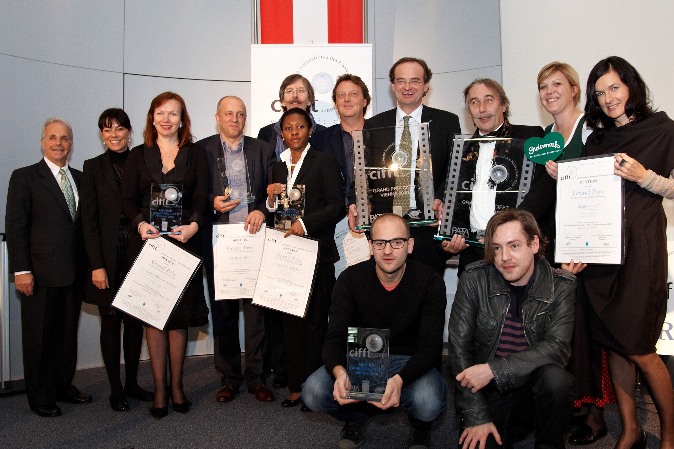 22. Grand Prix CIFFT kürt den weltbesten Tourismusfilm beim Abschlussevent des Festivaljahres 2010 in Wien Wien (TP/OTS) - Am Ende des spannenden Festivaljahres wurde traditionell der weltweite beste Tourismusfilm mit dem Grand Prix CIFFT ausgezeichnet. Rund 250 Fachleute aus der Tourismus- und Filmbranche kamen aus diesem Anlass zur Preisverleihung in den Julius Raab Saal der Wirtschaftskammer Österreich. Die begehrte Glas-Trophäe bleibt nach dem indischen und spanischen Doppelsieg im Vorjahr diesmal in heimischen Gefilden: Die Art Media Film- & TV Produktion konnte im Auftrag der Steirischen Tourismus GmbH mit dem "Steiermark Film" (engl.: Styria - The Green Heart of Austria) bei den 13 internationalen CIFFT Mitgliedsfestivals übers Jahr hindurch punkten. Anerkennungspreise gingen an die Nationen Polen, Lettland, Dänemark und Mozambique/USA. Österreich konnte eine weitere Mention einheimsen. 141 verschiedene Tourismusfilme wurden heuer insgesamt bei allen Mitgliedsfestivals im CIFFT Circuit von Portugal über Cannes und Karlovy Vary prämiert. In Wien haben die versammelten Festivaldirektoren nun den overall-Gewinner mit dem Grand Prix CIFFT ausgezeichnet: Die begehrte Glastrophäe bleibt in heimischen Gefilden und geht in die Steiermark! And the Grand Prix goes to... Der Steiermark Film im Auftrag der Steirischen Tourismus GmbH wurde mit viel steirischem Herzblut von der Art Media Film- & TV Produktion in 1 1/2 jähriger Drehzeit in den Jahren 2008/09 produziert. Das 6,19 Minuten lange Portrait über das grüne Herz Österreichs zeigt nicht nur imposante (klassische) touristische Highlights der Steiermark wie den Grazer Uhrturm oder die Murinsel, sondern entführt auch in bislang eher unbekanntere Schönheiten wie z.B. den Grünen See in Tragöß. Darüber hinaus gelingt es hier sehr gut auch die Mentalität der Steirer an sich einzufangen. Durch die Offenheit der Einwohner fällt die Kommunikation mit Besuchern aus aller Welt nicht schwer: Mit "Jo, jo", "Na, na", "guat" und einer Portion Herzlichkeit lassen sich alle Situationen klären. Von offener Ehrlichkeit, gewürzt mit Humor und einem Schuss Selbstironie sprechen die (steirischen) Produzenten der Art Media Film- & TV Produktion. Ein gelungenes technisch perfekt inszeniertes Porträt der grünen Mark und dessen Einwohnern, das die unabhängigen Juroren der 13 CIFFT Festivals überzeugen konnte. Unter dem englischen Titel "Styria - The Green Heart of Austria" hat dieser Film "mit seiner unkonventionellen Art die Herzen der Juroren weltweit "ergrünen" lassen und damit den Grand Prix gewonnen." resümiert CIFFT Direktor KR Alexander V. Kammel am Ende eines eindrucksvollen Festivaljahres. Durch die zahlreichen internationalen Awards bei den CIFFT-Festivals, hatten sie eindeutig die Nase vorne. "Generell waren in dem Jahr einige technisch hochstehenden Produktionen mit dabei. Die National Geographic Television z.B. das nicht nur den touristischen, sondern auch den ökologischen Aspekt in den Vordergrund Ihres audiovisuellen Projekts gestellt hat, oder aber auch die Animation aus Riga um nur einige der Preisträger zu nennen." so Kammel nach der Preisverleihung des Grand Prix CIFFT in Wien. Dir. Georg Bliem von der Steirischen Tourismus GmbH nahm die höchste Auszeichnung des Abends gemeinsam mit dem Produzenten Andreas Meschuh von Art Media und Frau Veronika Jeitler, ebenfalls Steirische Tourismus GmbH, entgegen. Überreicht wurde diese durch die Gastgeber WKO-Vizepräsidentin Martha Schultz und den designierten CIFFT Präsidenten Lee Gluckman, des Direktors des U.S. International Film & Video Festivals. Durch das Event führte KR Alexander V. Kammel, CIFFT-Direktor und Festivalorganisator, unter der musikalischen Untermalung der steirischen "The Uptone Monotones". Die Mentions Freuen konnten sich während der Veranstaltung in der Wirtschaftskammer Österreich auch zahlreiche internationale Gäste über die 6 vergebenen Anerkennungspreise: Die sogenannten Mentions. Dem Punktestand vom Steiermark Film am nächsten war die Produktion "Africa's Lost Eden", die den Gorongosa Nationalpark portraitiert und die ambitionierten Sanierungsmaßnahmen der Helfer nach 30 Jahren des militärischen Konflikts und 15 Jahren Bürgerkrieg zeigt. Einst soll dies der Ort gewesen sein, an dem Noah seine Arche hinterlassen hat. Der Regisseur James Byrne spricht von einem Film der Hoffnung, der verdeutlicht, dass die Bewahrung der Natur und die Weiterentwicklung der Menschheit und deren Technologien nicht zwingend im Wiederspruch sein müssen. Eine beeindruckendes Kameraspektakel mit bewegendem Hintergrund, für das Maria Isabel Macedo dos Santos, die Gattin des Botschafters von Mozambique, eine Mention entgegennehmen durfte. Spektakulär wird's auch nochmal für Österreich. Eaglewalk bzw. zu Deutsch Adlerweg ist der ausgezeichnete Imagefilm der Jungen Römer Vienna im Auftrag der Tirol Werbung GmbH, der von der Kunst des Wanderns erzählt, vom Weg, der das Ziel ist, vom eigenen Rhythmus, der sich in der wunderschönen Natur Tirols entdecken und erleben lässt. Philipp König und sein Compagnon Michael Lenzinger konnten mit Team nun doch noch eine Mention für sich gewinnen. Sie haben mit Ihrer Produktion im zweiten Festivalhalbjahr noch kräftig aufgeholt. Nicht zu verachten auch die beiden polnischen Produktionen. "Frederic 2010" ist ein impressionistischer Dokumentarfilm von TV Project sp. z.o.o. (Limited) zu Ehren des Chopin Jubiläums. Die Produktion im Auftrag des eigens initiierten Celebration Offices in Warschau präsentiert die Hauptschauplätze des Klavierkomponisten. Musikalisch untermalt wird die Reise von Originalen des Meisters. Auch der Präsentationsfilm von Warschau im Rahmen der Bewerbung zur Europäischen Kulturhauptstadt 2016 "Warsaw, European Capital of Culture 2016" fand regen Zuspruch unter den internationalen Juroren. Die Dänische Produktion "Kalundborg - Your Scenic Destination" und der animierte Lettische Präsentationsfil