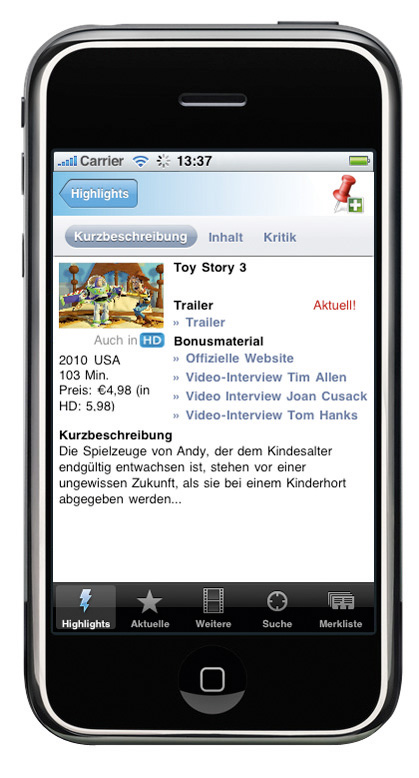 Kostenlose App bringt alle Trailer und Infos auf iPhone und iPod