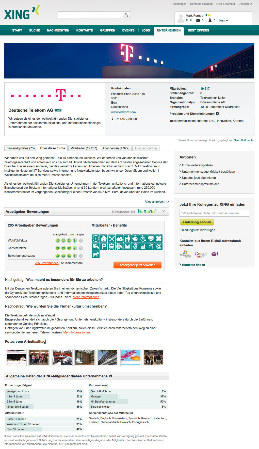 XING-Unternehmensprofilen, die sich über XING an mehr als zehn
